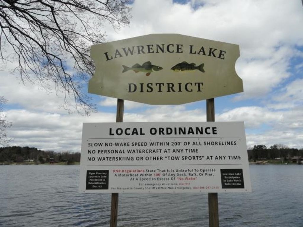 Waterview lot on Lawrence Lake! LAND CONTRACT is acceptable for this seller, terms negotiable. Build that dream home or lake cabin right here on 2.2 wooded acres. This lot does not have waterfrontage, there is water access close by. This lot already has a well & 3 bedroom conventional septic system installed. Lawrence Lake is a nice clean 220 acre body of water with great fishing. Motors are allowed, skiing & personal water craft are not. The lake is fed by the Lawrence Creek Trout Stream on the Northwest side. The area is known as Lawrence Creek State Natural and Wildlife Area, which is open to hunting, hiking, fishing, wildlife viewing, cross country skiing, etc. Numerous other lakes in the area, golf, and the Wis Dells.