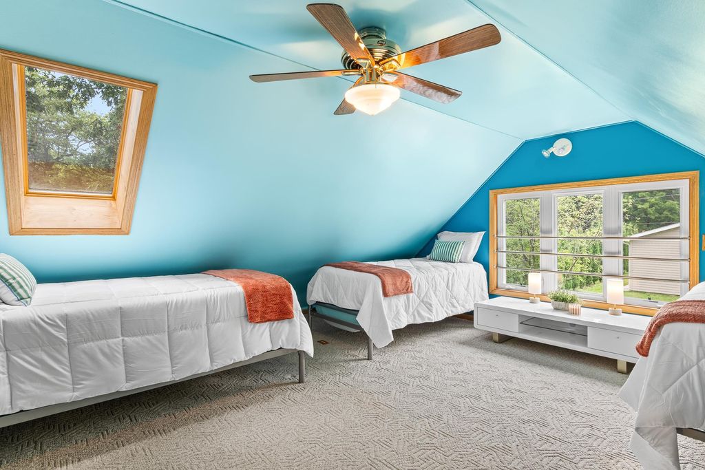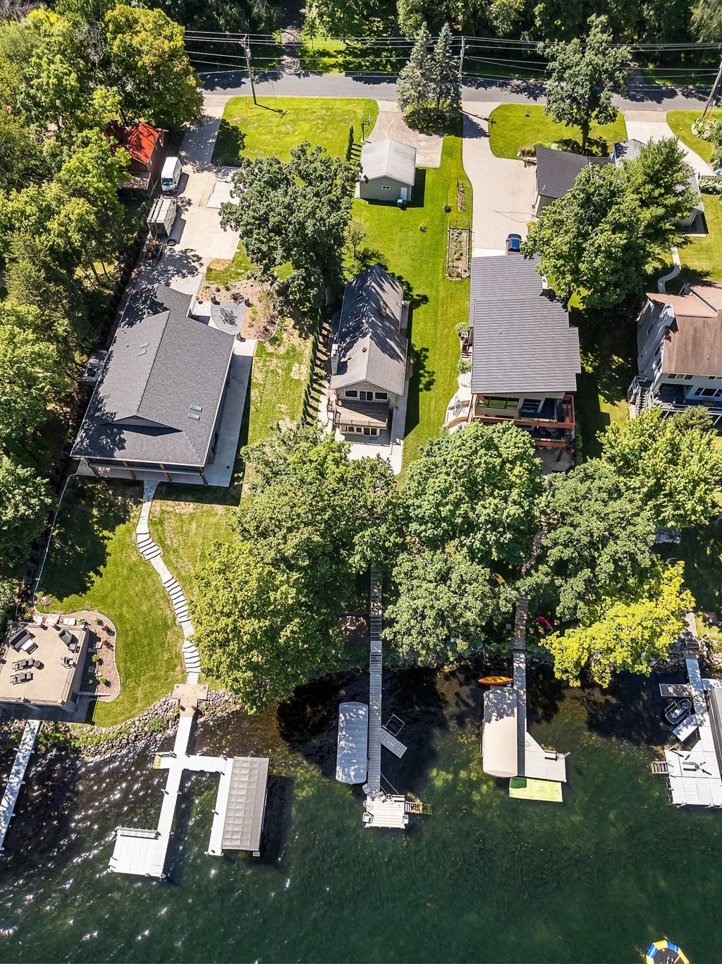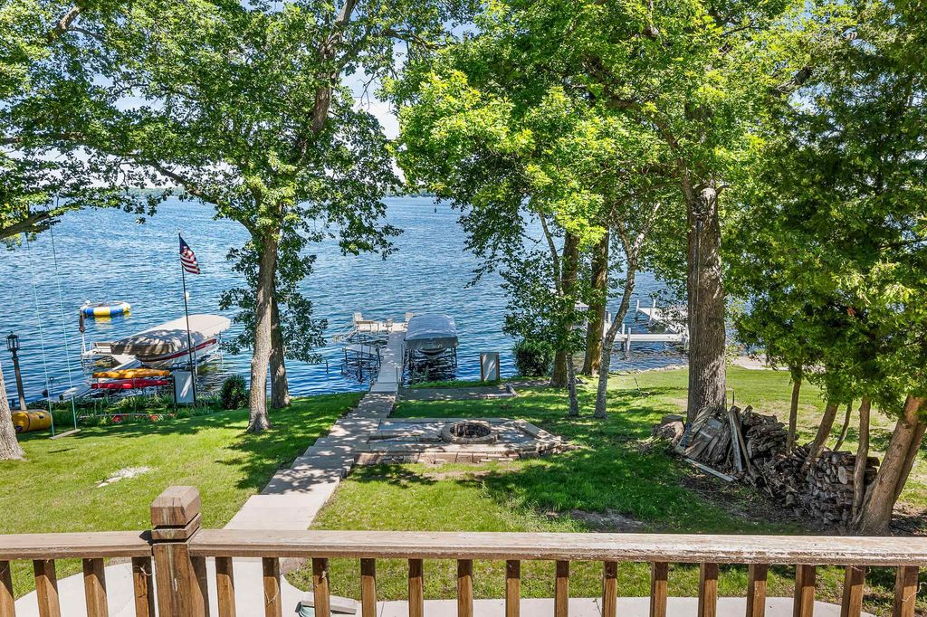 Lake living at its finest in this stunning 2 story walkout lake home! Boasting 3 bedrooms, a versatile den/sleeping area, and a loft for all of the kids and their friends. This residence offers the perfect blend of comfort and style. Entertain with ease in two spacious gathering areas adorned with two wood-burning fireplaces, ensuring cozy evenings and a touch of rustic charm, and a bar/ kitchenette area in the lower level family room. Take in breathtaking lake views from the lakeside seasonal porch, a tranquil space to unwind and soak in the beauty. Step outside to the lakeside firepit, perfect for roasting marshmallows or simply enjoying the crackling flames under the stars. With a gentle sloping yard leading to the lake and a private pier, your waterfront dreams come to life.