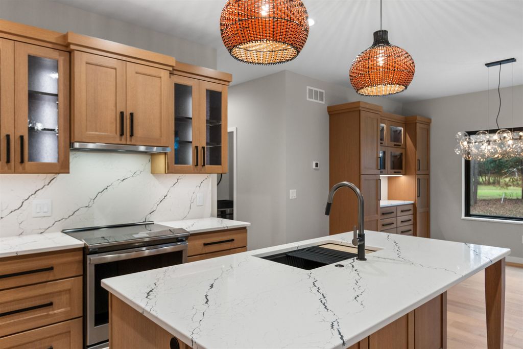 MOTIVATED SELLER!!! BRAND NEW, CUSTOM, PROFESSIONALLY DESIGNED, RANCH HOME with ALL the UPGRADES & HIGH-END finishes. On Hole #1 of the Lakes. Enjoy EVERYTHING you need on the Main Level; 3 bdrms/3 baths. Interior finished w/ hardwood flooring, QUALITY custom cabinetry, Cambria quartz countertops, GE appliances(w/induction range), LED recessed lighting(prepped for wireless), Floor to Ceiling Tiled Hearth w/gas fireplace, & zero-entry Tiled Master Shower! Exterior finished w/ Anderson windows, Board/Batten LP Smart Siding & Metal roof accents! Also, 9'/10' interior ceilings, 8' OH doors, & 3-car insulated/finished garage w/ elec/gas for grill & garage heater. LOWER LEVEL IF FINISHED has 2 addl. bdrms (w/ egress), Full bath, & RecRoom.