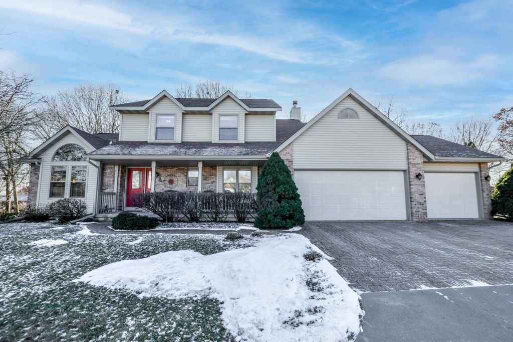 This Former Southbridge Parade Home feature 5 bedrooms, 3.5 baths on a private cul-de-sac. Sun filled living room w/vaulted ceiling, formal dining room w/trayed ceiling, gourmet kitchen w/granite counters, ss appliances, breakfast bar and dinette, family room w/gas fireplace, office, 1/2 bath and mudroom with laundry hookups. Second floor primary ensuite features a remodeled bath w/jetted tub, walk in shower and walk in closet. 3 more bedrooms and remodeled bath. Walkout LL features a game room w/wet bar, rec room, craft room, 5th bedroom, bath and laundry. Oversized finished 3 car garage. Central Vacuum. Large mature rear yard with wrap around deck and firepit area. Close to pool, several parks and bike path. New roof, gutters and downspouts(2024), furnace and water heater(2019).