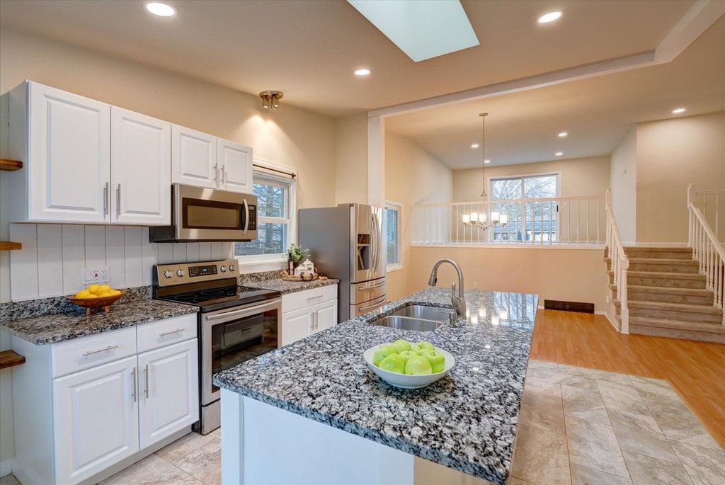 Completely move-in ready, this beautifully updated home sits on a peaceful cul-de-sac in a prime west Madison location. The open floor plan features vaulted ceilings and a skylight, filling the space with natural light. The renovated kitchen boasts granite countertops, a generous island with an eat-in bar, and ample storage. The expansive primary suite includes a walk-in closet, while both bathrooms have been updated. Fresh interior paint, new carpet, and new flooring throughout enhance its contemporary appeal. A spacious deck overlooks the private, tree-lined yard"”perfect for entertaining. The versatile rec room, complete with a cozy fireplace and full bath, offers additional space for guests or flexible living. Don't miss this incredible opportunity!