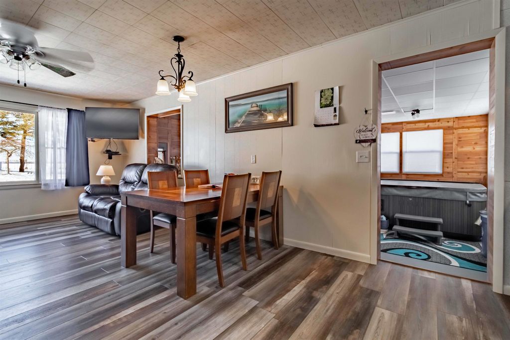 Spectacular Sunsets on Castle Rock Lake! Lake view cottage in great condition with two bedrooms, 1 bath, open concept living, kitchen and dining area, spacious family room with hot tub and a great view of the lake. Home has two lots allowing for expansion, spacious yard, many landscaped areas with beautiful perennials, gather and relax on the new concrete patio or around the fire pit and start making memories today. Home has many newer upgrades including: septic system, many windows, water heater, flooring, 200 amp service, and many more. Don't miss out on your opportunity to be steps away from boating, fishing, swimming, skiing and much more! Public beach and boat launch at the county park just down the road. Home is currently rented as an Airbnb. Call today for a private showing.