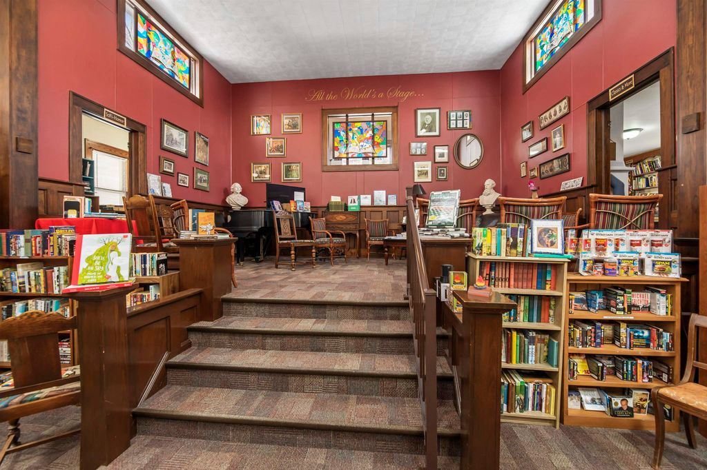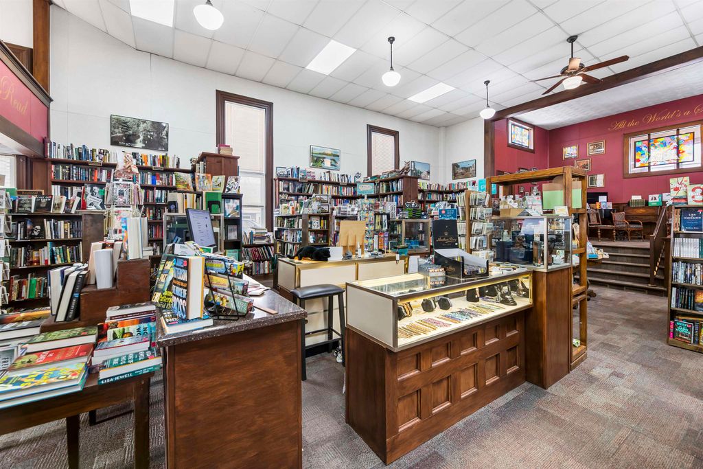 Welcome to this inviting 2 story home. Featuring 3beds and 2baths.The main floor boasts a formal dining room, a versatile bonus room, spacious kitchen and the convenience of 1st-floor laundry. All 3 bedrooms are located on the upper level, providing privacy and separation from the main living areas. Outside, a detached 2-car garage offers plenty of parking and storage space. This property also includes former church, built in 1875, now home to the beloved Readers Realm Bookstore. Boasting approximately 4,000 sq. ft., this unique property is rich with original woodwork, tall ceilings, and oversized windows, creating an atmosphere of timeless charm and character. Situated on a high-visibility highway frontage. Both properties selling together.