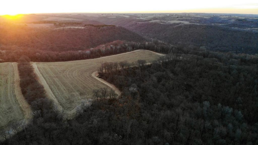 This Driftless Area hunting property offers 50/50 timber and tillable land at the end of a private road. While there are no structures, it's ideal for building an off-grid cabin. The tillable land is leased for $500/year, with options to continue. The timber is not enrolled in government programs, allowing flexible management. Improvements include a buried water tank, mock scrape vines, fruit trees, and an elevated box blind. Access to 400+ acres of public hunting land makes it a prime spot for hunters.