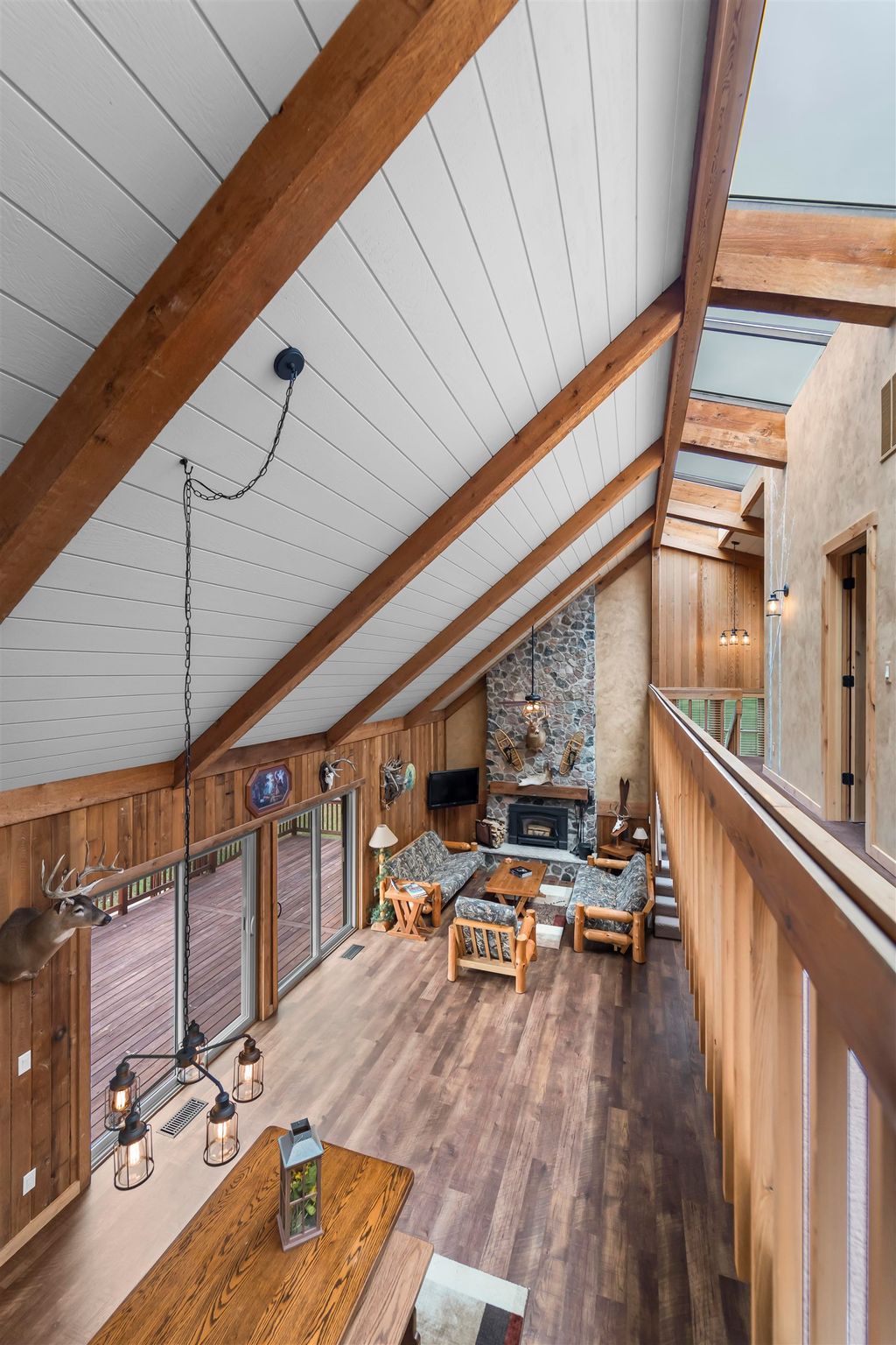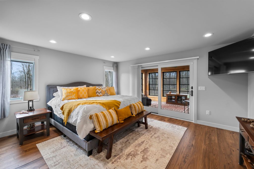 Welcome to your own private paradise w/ this stunning 2022-built ranch, nestled on 120 acres of pristine wooded land! Perfect for nature lovers & sportsmen alike, this expansive property boasts a serene pond w/ trout, abundant wildlife, numerous outbuildings & a private hunting lodge. Discover sophistication blended w/ modern comfort in all of the 5,000+ sq ft of finished, bright living space; including Hickory hardwood floors, GE Cafe Series SS apps, countless quartz counters & a massive ML laundry/mudroom. An impressive wood burning fireplace w/ floor-to-ceiling stone & hearth serves as an elegant centerpiece. Completely remodeled original cabin offers short term rental possibility! See Associated Docs for more specific details & data.