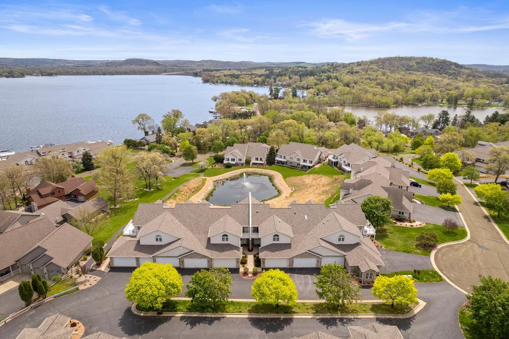 Stunning, fully updated Paradise Island Condo with amazing sunrise views of the lake & surrounding bluffs! Outstanding opportunity to own this immaculate 2,830 +/- sq ft main level unit! This property features an open kitchen with granite counters, Amish custom cabinets, stainless appliances & gas stove, a living room with a stone gas fireplace, oak flooring, and a large private maintenance-free deck with power screen. Enormous primary suite with a custom walk-in shower & jetted tub. Exposed lower level features a 3rd bedroom, large rec room/family room with walkout to screened patio! Lake access w/ designated boat slip #D10 and included straight drive-in "Jet Dock" boat lift! 2 Car Garage too! Enjoy the Okee area with walking paths, a park, two restaurants, and the Ice Age Trail nearby!