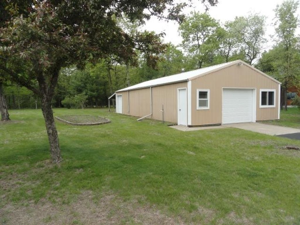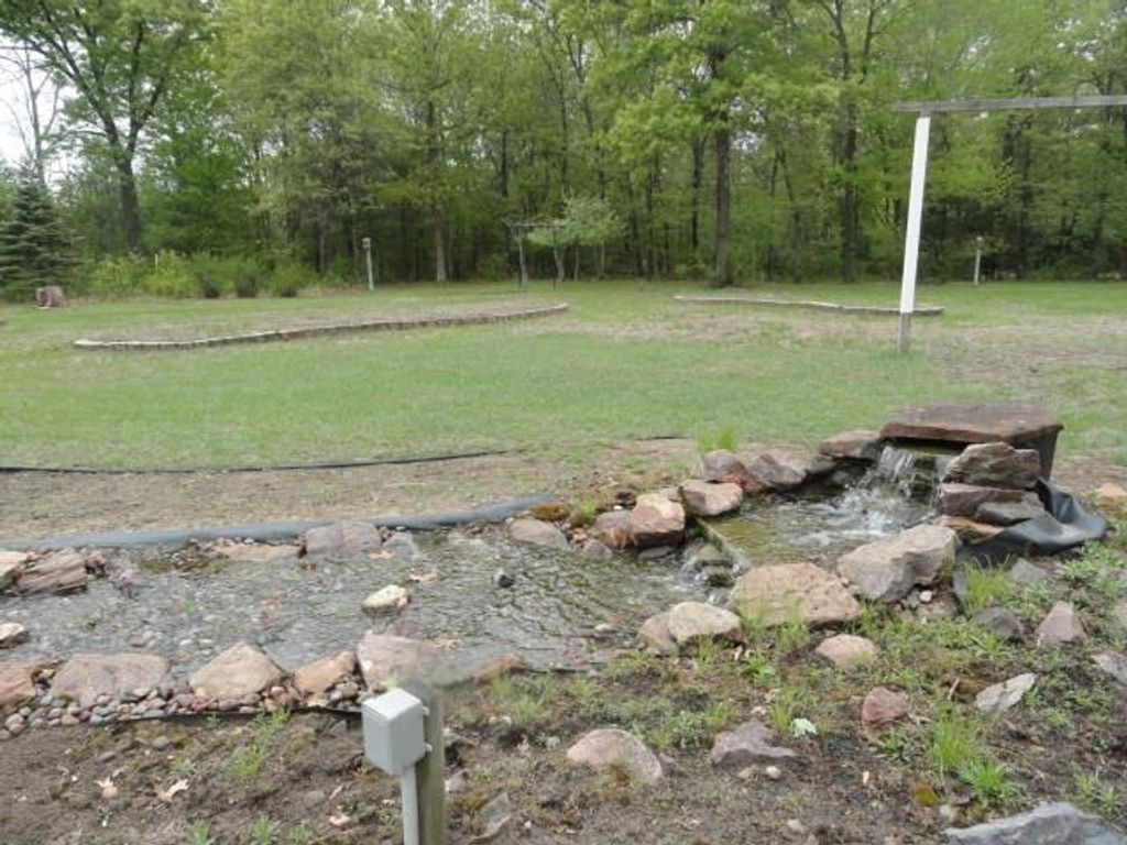 Very nice Rural Ranch on 5.5 wd acres w/a nice combination of pines & hardwoods. Open concept w/a lg great rm, dining area, circular wood fireplace & kitchen, all appl incl. Main fl also has a master suite, 2 other bedrms, 2nd full ba, spacious foyer, main fl laund w/walk-in storage area. Full & newly finished lower level w/a very lg family rm, den, office space, & a storage rm. 2 car insulated att garage & cent air. There is also a nice insulated & heated outbuilding (work bench & shelving will remain). There's also a 10x16 storage shed. Large 2 tiered-deck overlooking the babbling brook/water feature & pond. Excellent hunting w/well-established trails. This is a nice secluded location. Seller will CREDIT buyer $6,000 for dining area fireplace removal.