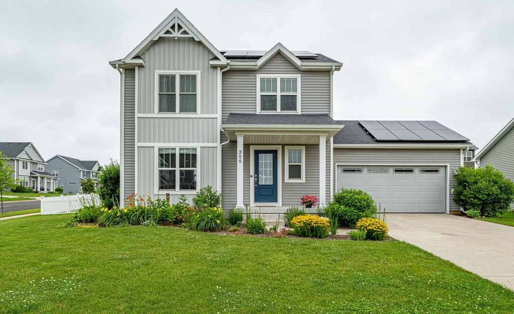 Showings begin 6/27. Take a look at this well-maintained 8-yr-old home in an active Verona neighborhood. Spacious open-concept main-level living area with beautiful dark kitchen cabinetry, laundry/mudroom, and built-in window seat in the living room. Large island in the kitchen but there's also room for a dining table. Easy access to the FENCED-IN backyard through the sliding glass door. Corner lot offers great outdoor space! 3-beds & 2-baths upstairs with BRAND NEW CARPET. Fully finished basement has family/rec room and a separate office. What more could you need? Oh, I don't know? Maybe some solar panels to keep the electric bills down? Check! This house has it. Close to Epic and Fitchburg conveniences. Take a look and get ready to move in!
