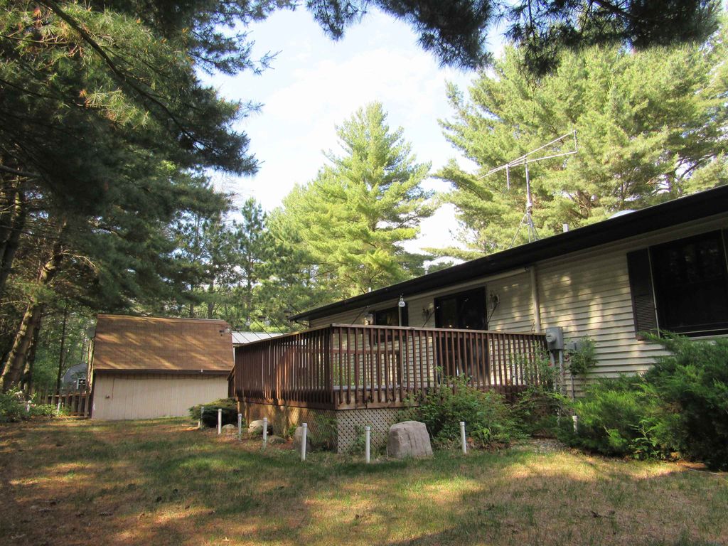 This move in ready, well-maintained, one-owner custom-built split ranch home offers a combination of comfort, functionality and location! Minutes from Lakes Petenwell, Arrowhead, Sand Valley, ATV trails & great recreation. Set on a wooded lot framed by tall pines that provide a serene, private setting. Inside, the spacious open-concept living area features a cozy gas fireplace, dining area W/snack bar, and patio doors leading to a backyard deck W/Sunsetter Awning, great for relaxing or entertaining. A full basement offers abundant storage and potential for expansion. The huge garage with oversized door is great for all your storage needs, complemented by an additional shed. Recent updates include newer windows, H2O heater & roof!