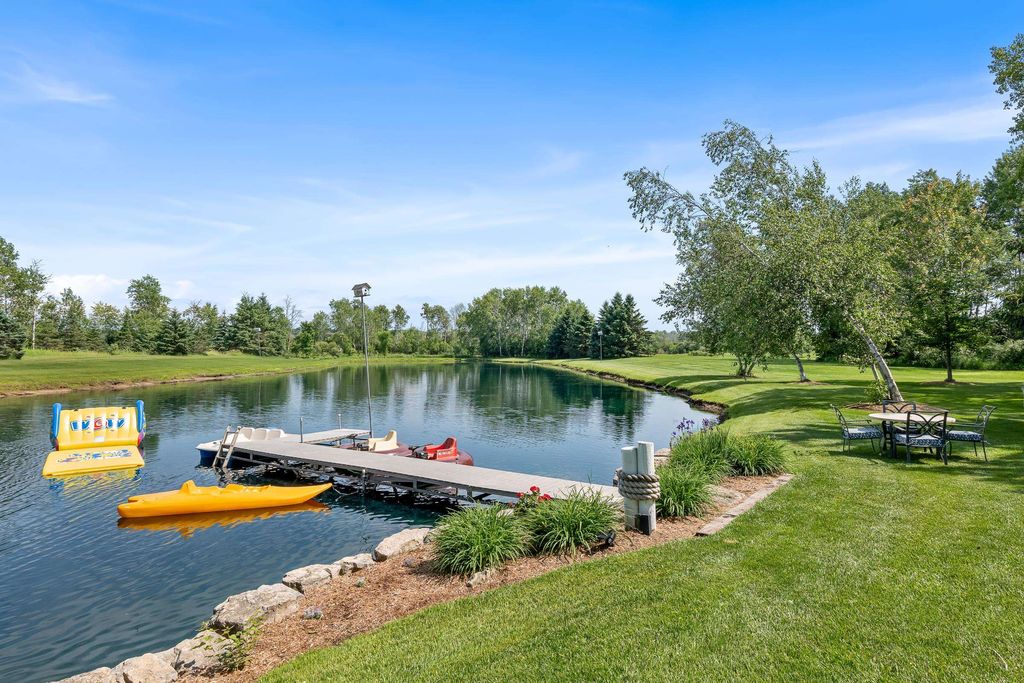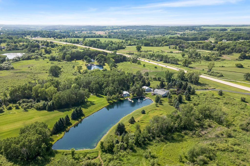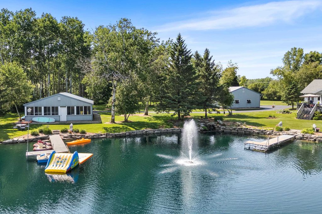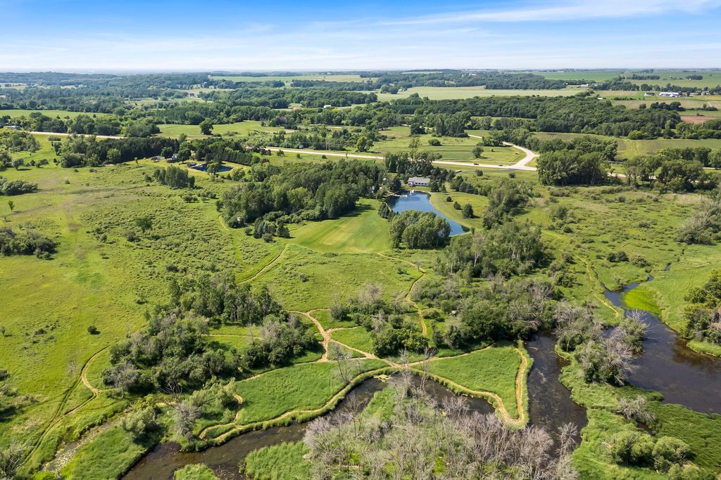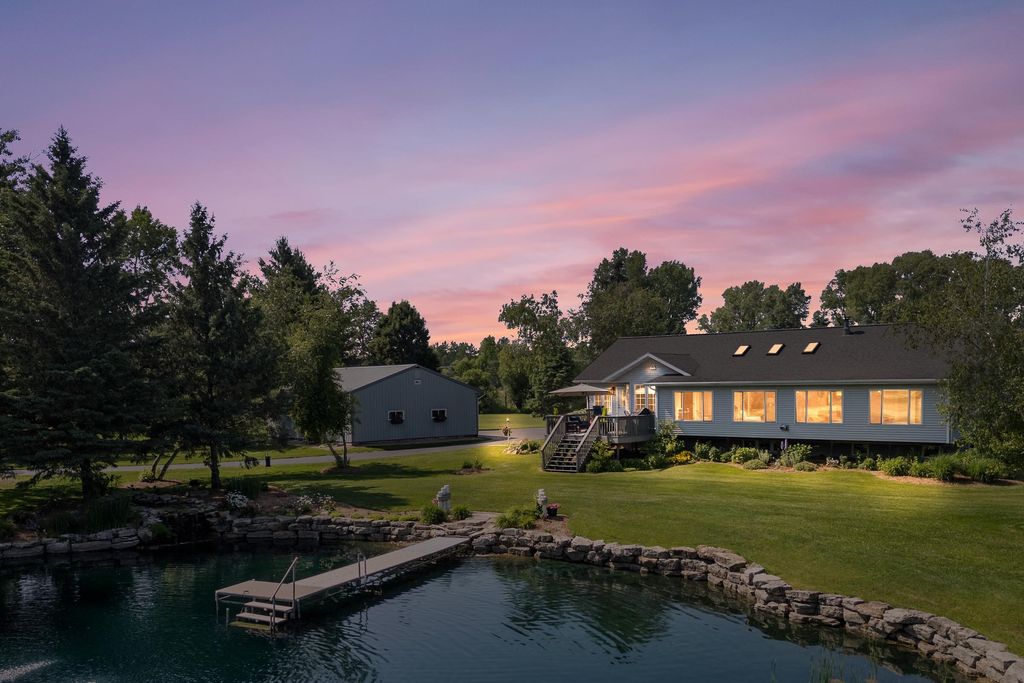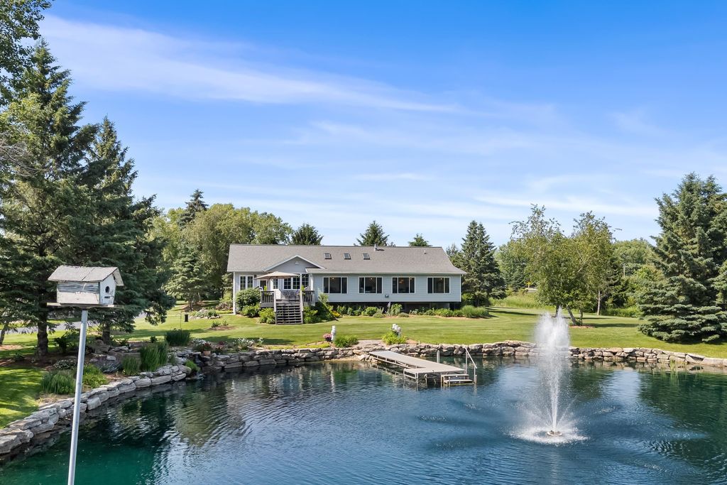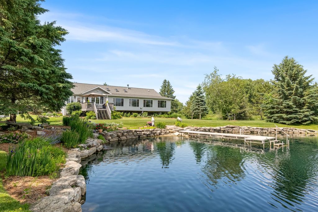 Sportsman's Paradise! Well maintained, solid built 4 bed, 3 bath sprawling ranch sits amid 42+ acres of lush land (a variety of manicured perennials, flat sprawling lawn, wooded, w/ prime hunting (big buck/waterfowl), 1/3 miles of Silver Creek frontage-giving way to big Green Lake access via kayak/canoe, features 2 outbuildings. One is 30'x40'-garage space on one side w/ 480 sqft suite of add'l heated living space on the other side- a kitchen, bathroom, living room/sleeping area. The other building has storage on one side and a swim tub w/ hot tub & cedar sauna on the other. The private pond is fed by artesian well and springs, crystal clear, great for swimming & fishing. On bike trail! This property has it all w/ prime location! Showings start-7/21
