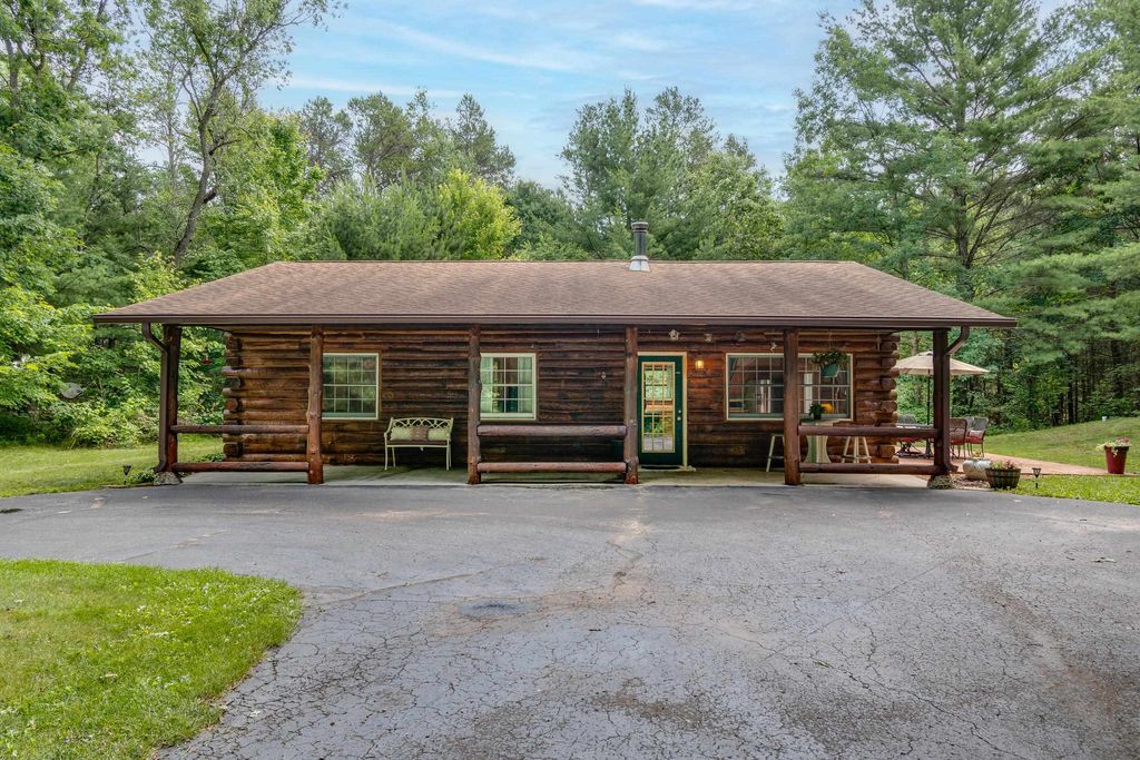 Your Woodland Getaway"”Minutes from the Dells! Set on 1.74 wooded acres, this charming log home offers a peaceful retreat in every season. A winding driveway through the trees welcomes you to a setting of privacy and natural beauty. Enjoy morning coffee on the covered porch as deer and hummingbirds pass by, or spend summer evenings on the stamped concrete patio under the stars. Inside, you'll find a spacious Kitchen, a cozy Living room with a wood-burning fireplace, and a primary suite with heated bathroom floors for year-round comfort. With 2 BD, 2 full BA, and an oversized 2-car detached garage for all your toys, this home is ideal as a full-time residence or weekend escape, just minutes from WI Dells, boat landings, parks, dining, golf, world-famous water parks, and outdoor adventure.