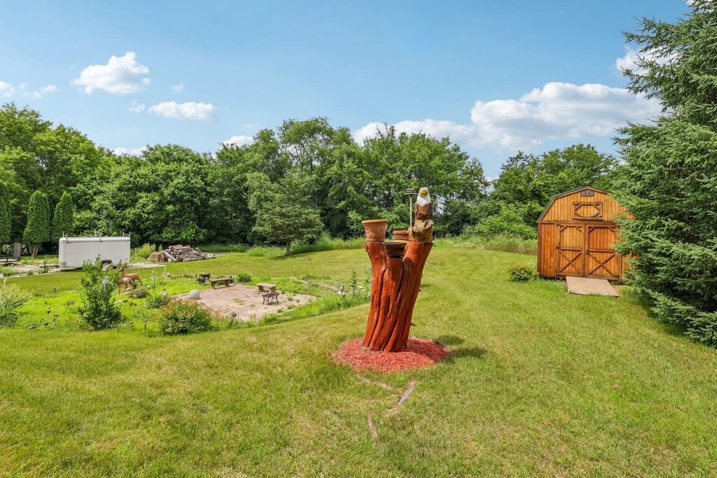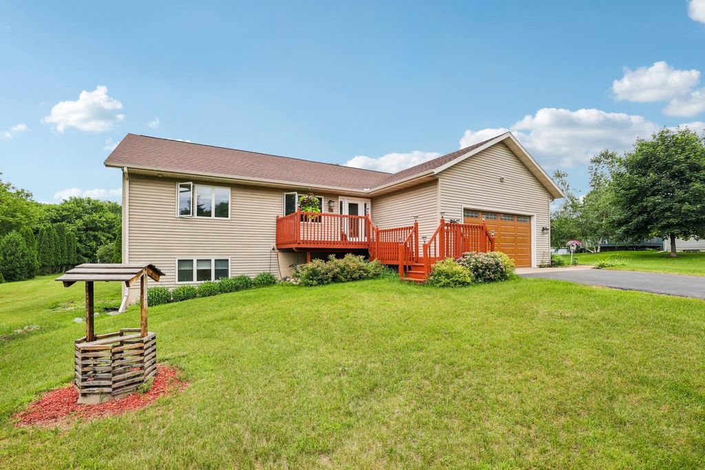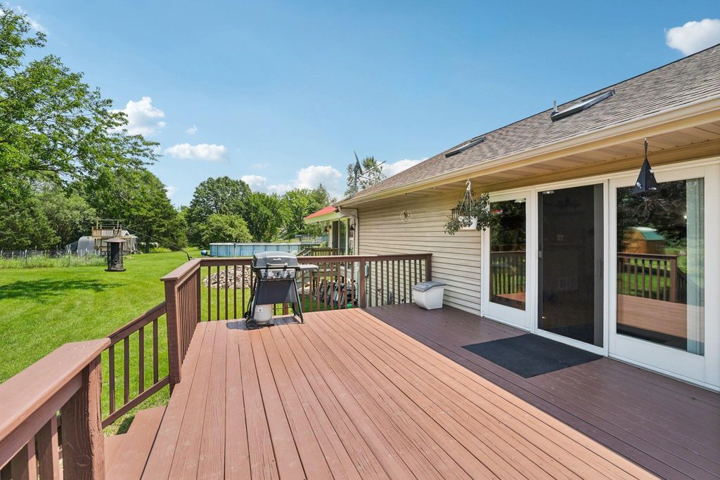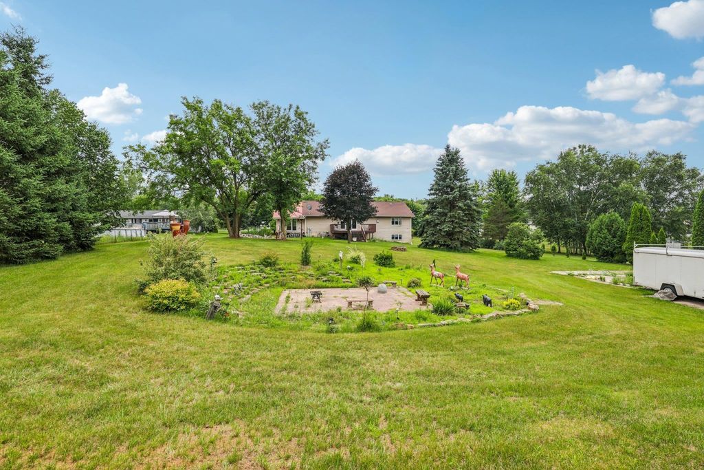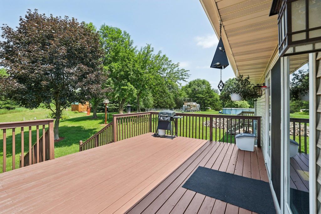 First time on the Market for this lovingly cared for Ranch home with spacious and open floor plan. Main level with vaulted ceilings, open concept kitchen/dining/living rooms offers Hickory cabinets, granite tops, newer appliances. Living room offers hardwood floors w/ gas fireplace and walk out to the deck overlooking the backyard patio for entertaining or quiet times listening to the rockscaped pond. Newly finished 4 seasons room offers vaulted ceilings and a great space with plenty of natural light. Basement includes Rec Room with walk out as well as another bedroom, full bath, dry bar and utility/laundry area. All of this situated on a well manicured 1 acre lot w/ mature trees just minutes off I39.
