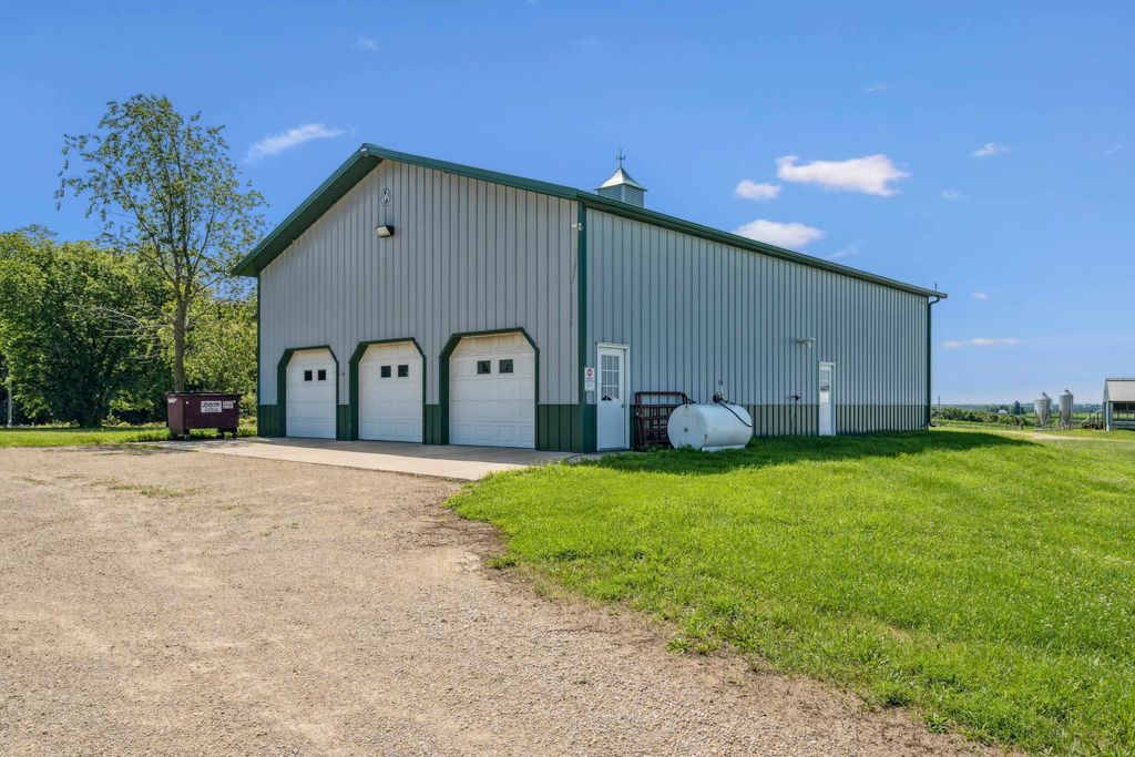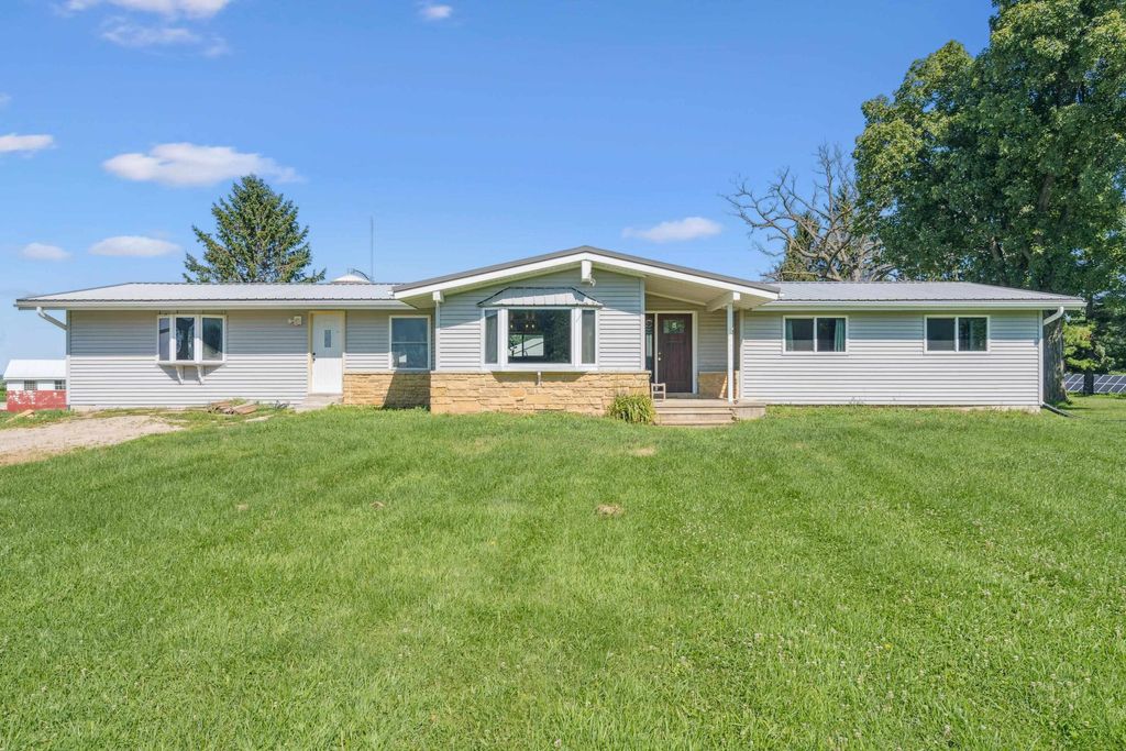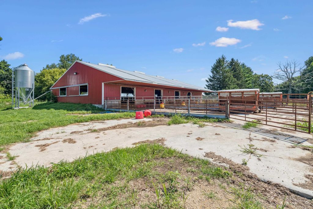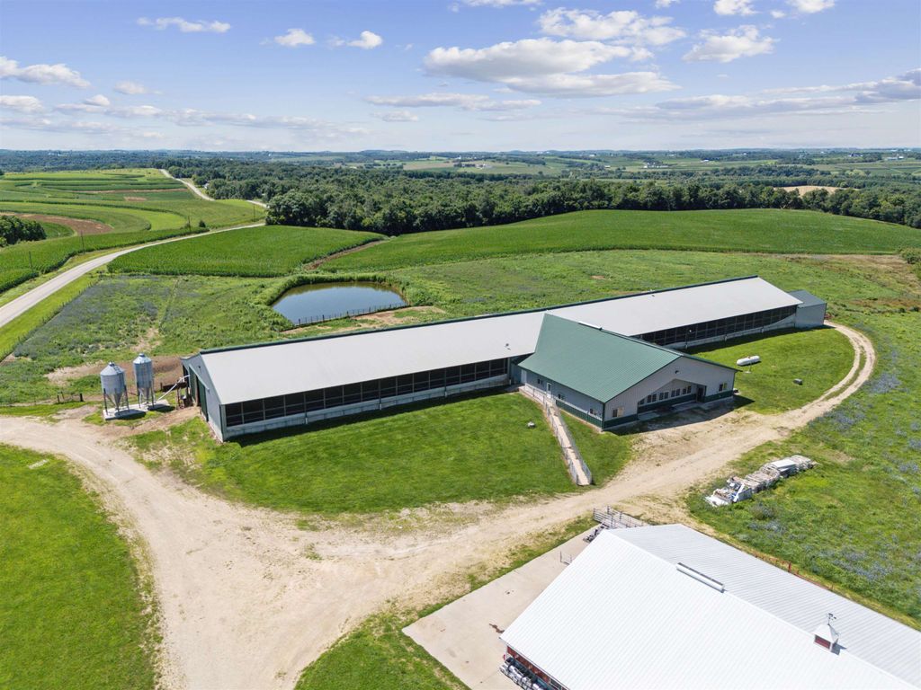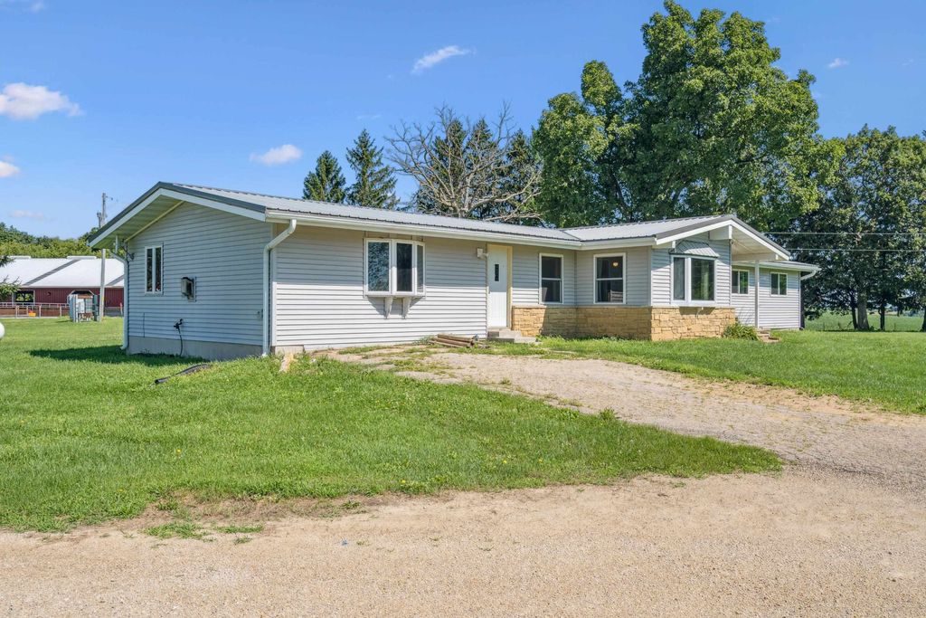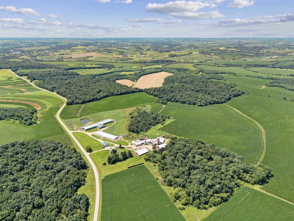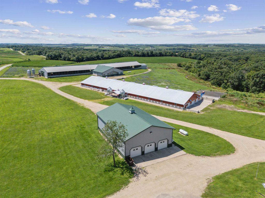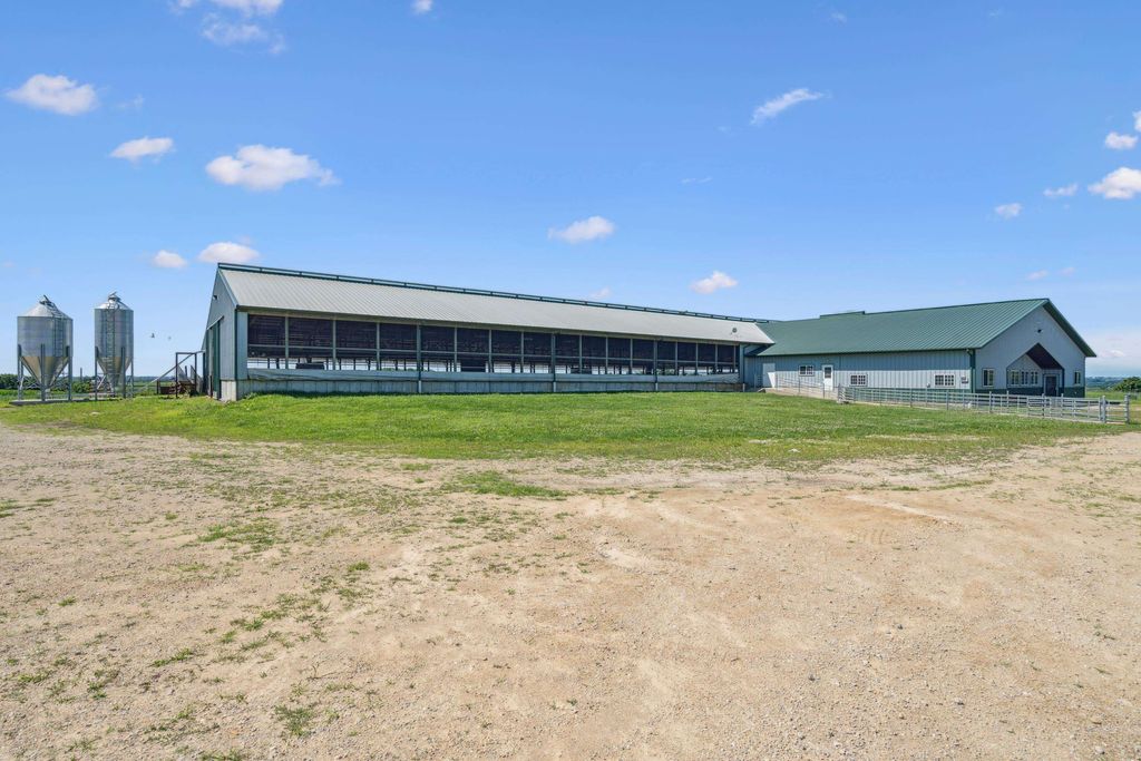 Pleased to present a well-improved 63.07-acre m/l property near Darlington, WI, featuring a 3-bed, 1.5-bath ranch home with 1,852 SF, LVP flooring, hickory cabinets, and a gas fireplace. The home includes updated utilities, a 2016 furnace, and solar power (48 panels). The west side features a turnkey livestock-ready setup, complete with seven agricultural buildings, including a heated shop, calf nursery with automatic feeders, steer barns, a former sow barn, dairy parlor, and feedlot. Approximately 20 acres east of Riverside Road include timber and tillable ground"”ideal for recreation or a future building site. Extended description in associated documents.
