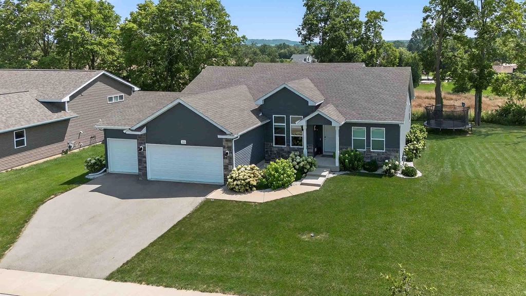 Step into comfort and style with this thoughtfully designed 3-bedroom, 2-bath ranch in a welcoming Belleville community. The main level offers an open-concept layout with a cozy gas fireplace in the living room and a modern kitchen featuring stainless steel appliances, quartz countertops, white cabinetry, and a spacious island"”perfect for entertaining. The primary suite includes a walk-in closet and a private bath with a dual quartz vanity. The unfinished lower level is stubbed for a bathroom and ready for future expansion. Enjoy outdoor living on the composite deck or stamped concrete patio, ideal for relaxing or gathering with friends. All this just a short drive from downtown Madison"”close enough to enjoy the city, yet far enough to enjoy the peace of small-town living.
