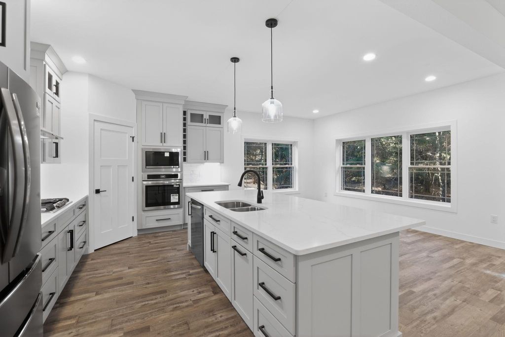 Beautiful new build on a large wooded lot in an up-and-coming subdivision in Montello. This home is between two Montello lakes and offers easy access to highways and interstates"”20 minutes from Portage, less than 10 minutes from Westfield, and 30 minutes from the Dells. Designed in a modern farmhouse style, this ranch features an open-concept layout with Amish-crafted cabinets, quartz countertops, a kitchen island, pantry, and a cozy fireplace. Carpeted areas add warmth to select rooms. The primary bedroom includes an ensuite bathroom and a walk-in closet. A full basement provides ample additional space. There's so much more to offer. Builder from Montello area with 30+ years.