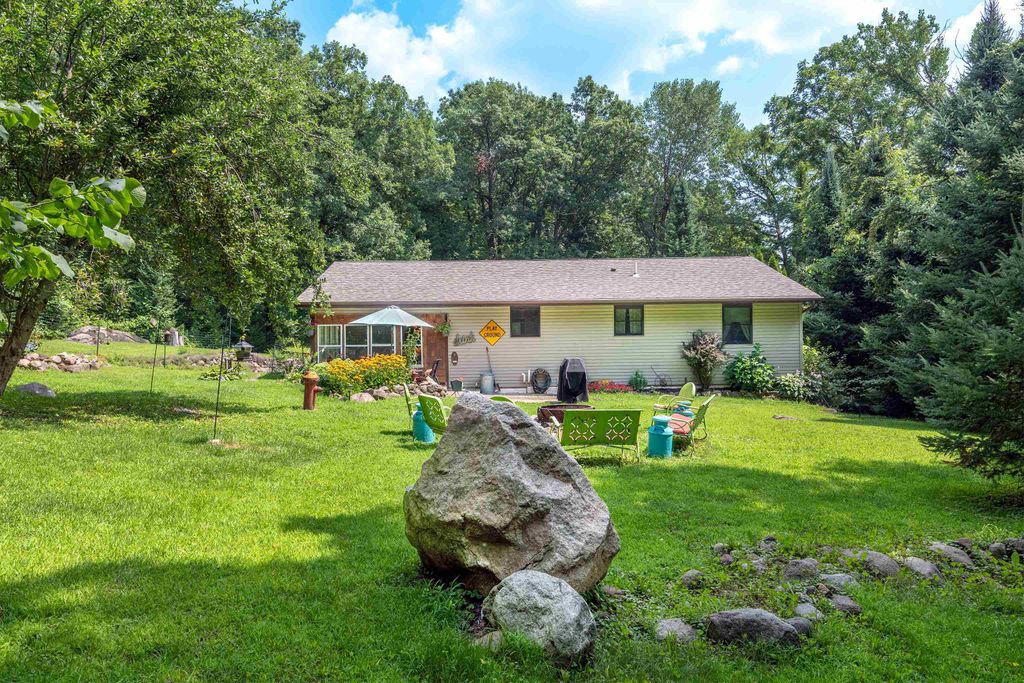 This property offers the perfect blend of country living and modern convenience on 7.62 wooded acres in the Village of Poy Sippi. The home features a spacious layout with 4 comfortable bedrooms and 2 full bathrooms. The ensuite has a deep soaker jacuzzi tub. The 2 car garage has a workshop area built in. Laundry closet on main floor. The acreage offers privacy, at the end of a dead end road, and makes for a peaceful retreat. Enjoy outdoor adventures right in your backyard with plenty of space for gardening, hiking or simply relaxing by the firepit. Plenty of wildlife to view. This home is a rare find.