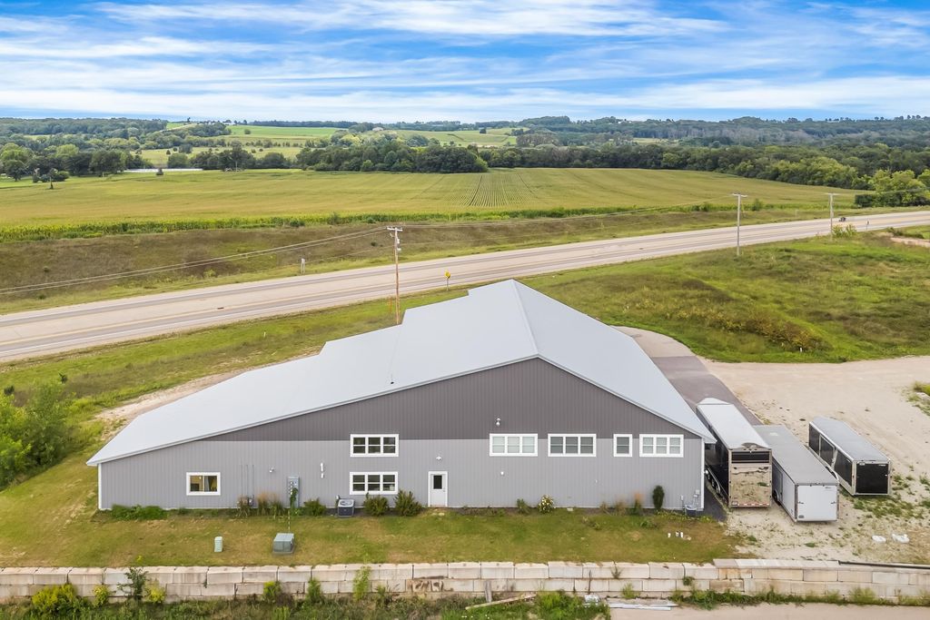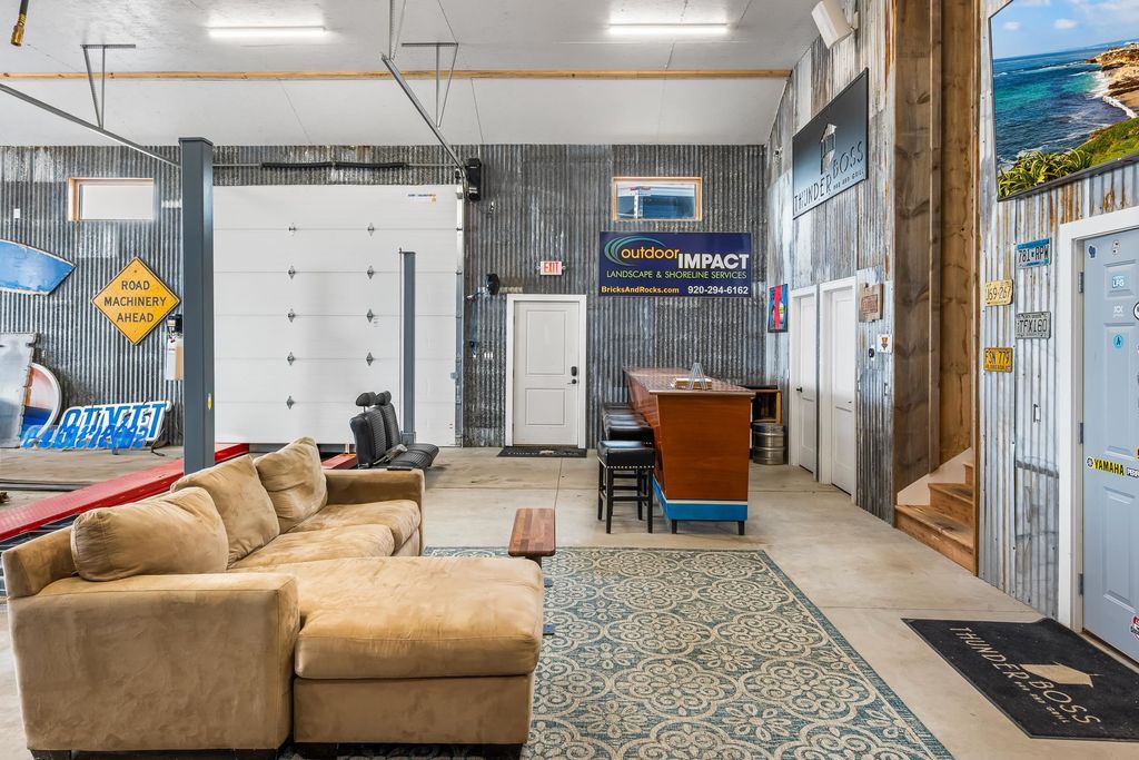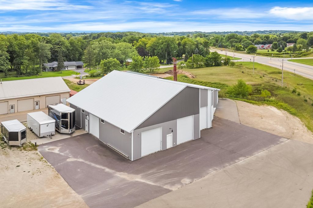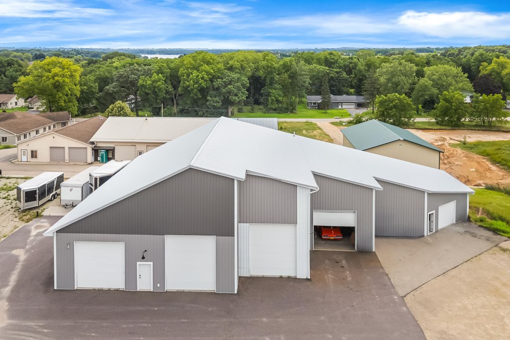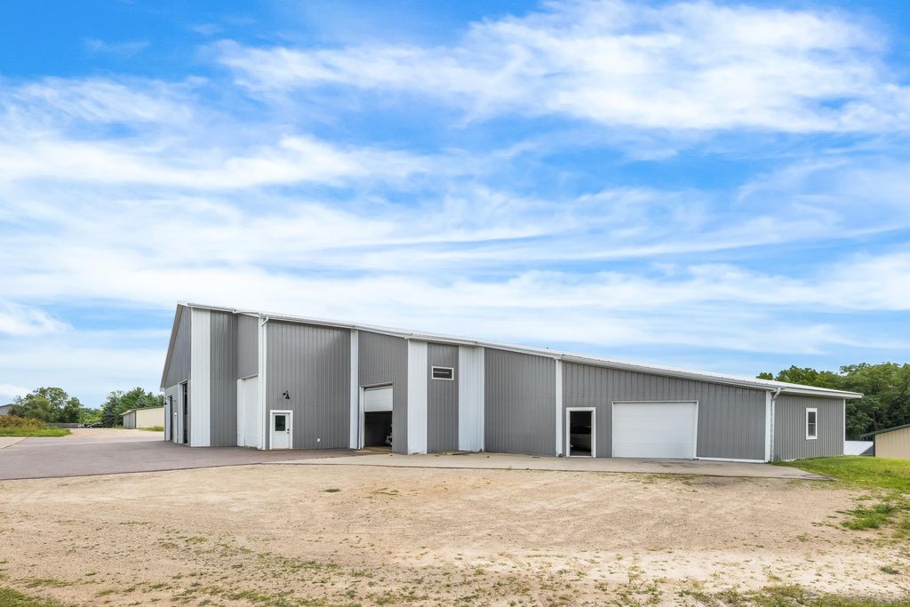 Nearly 7,000 sq. ft. of commercial space just outside Green Lake city limits with prime Hwy 23 visibility. Perfect for the ultimate man cave or your business venture. Featuring 3 bays, with the largest having a massive 3,300+ sq. ft. workshop (58' x 42') with three oversized overhead doors. Amenities include bathroom, locker room, shower, upper break room, guest room, and additional bath. Entire building is heated with partial air conditioning. A large central air compressor conveniently serves all 3 bays. Versatile, spacious, and ideally located"”this property is ready for your vision.