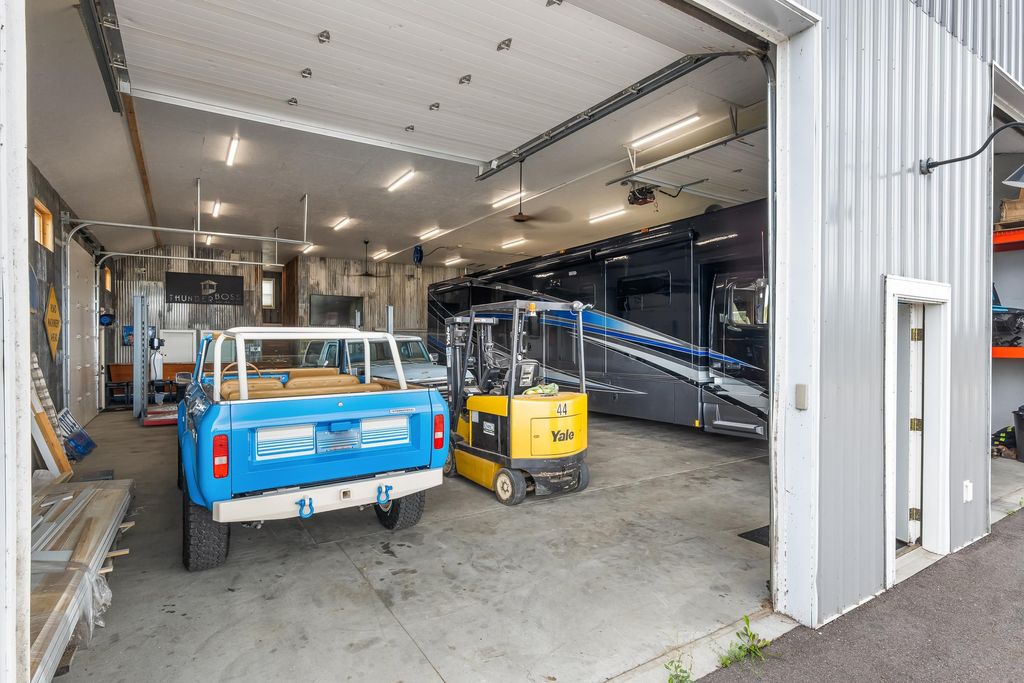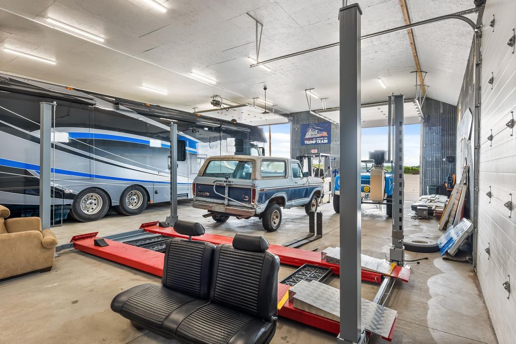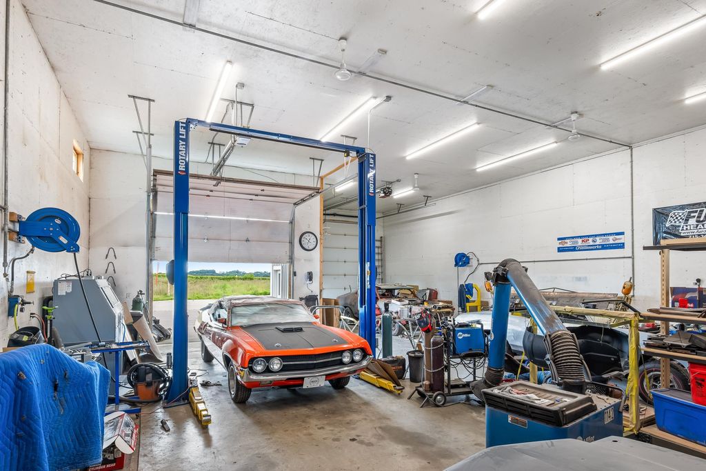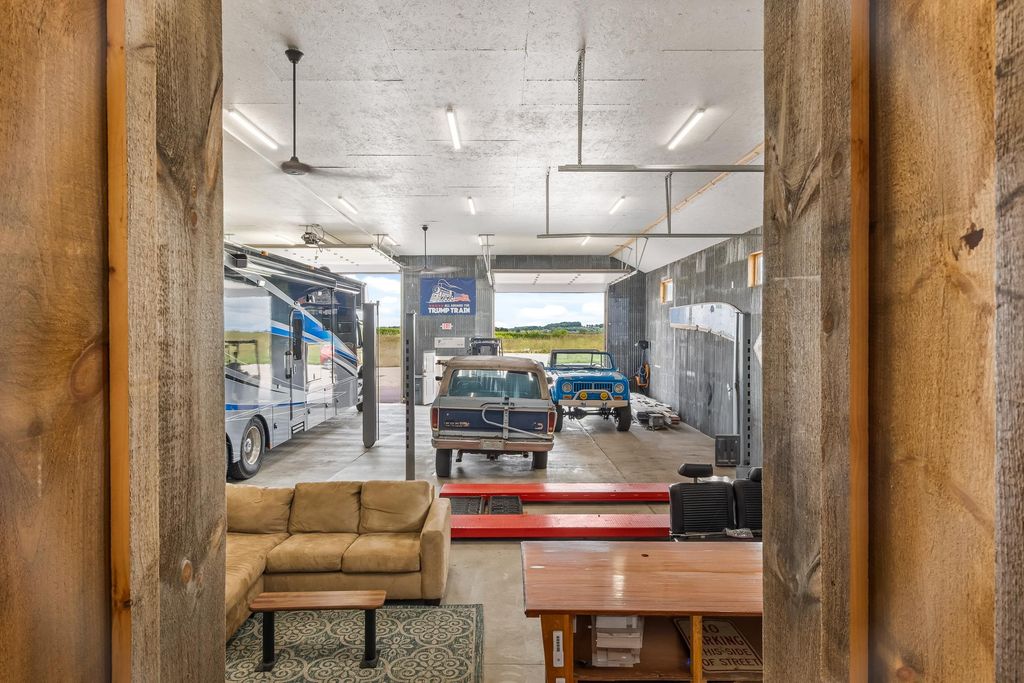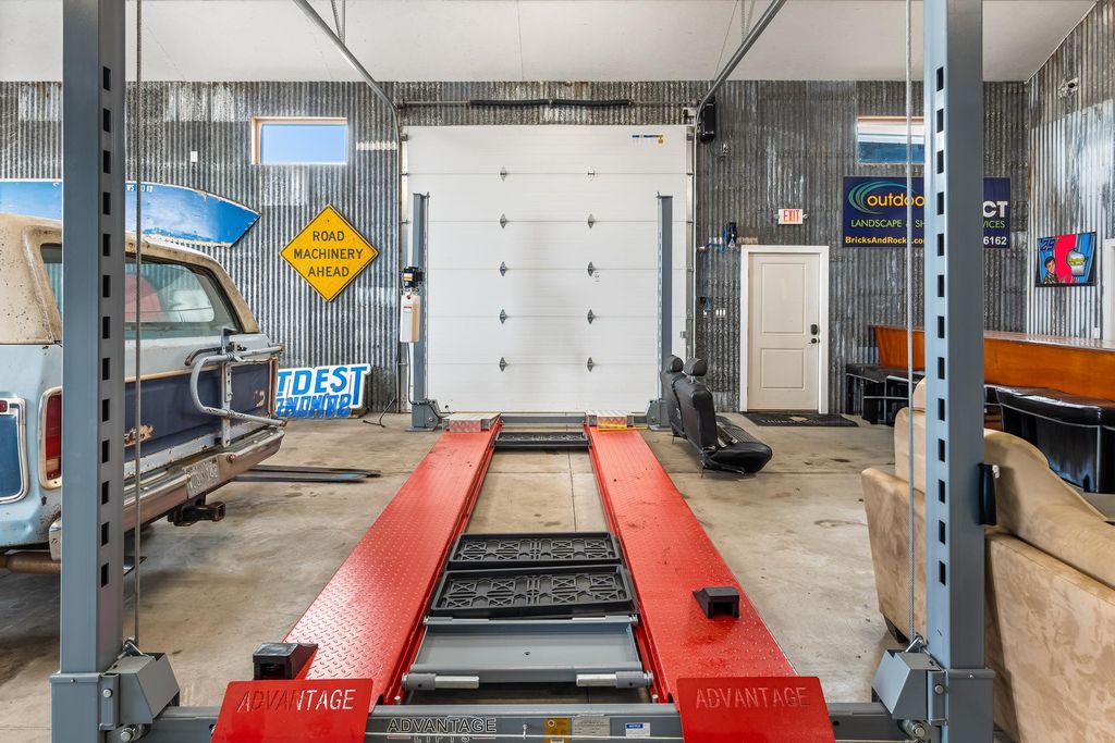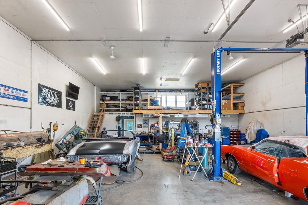 Nearly 7,000 sq. ft. of commercial space just outside Green Lake city limits with prime Hwy 23 visibility. Perfect for the ultimate man cave or your business venture. Featuring 3 bays, with the largest having a massive 3,300+ sq. ft. workshop (58' x 42') with three oversized overhead doors. Amenities include bathroom, locker room, shower, upper break room, guest room, and additional bath. Entire building is heated with partial air conditioning. A large central air compressor conveniently serves all 3 bays. Versatile, spacious, and ideally located"”this property is ready for your vision.