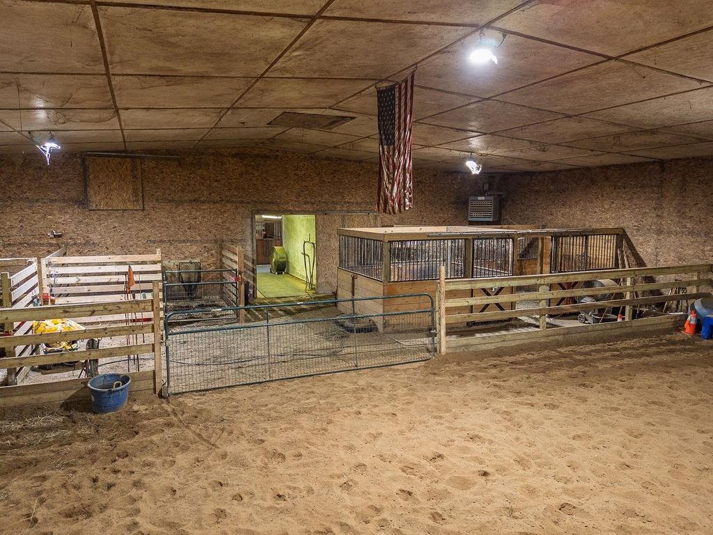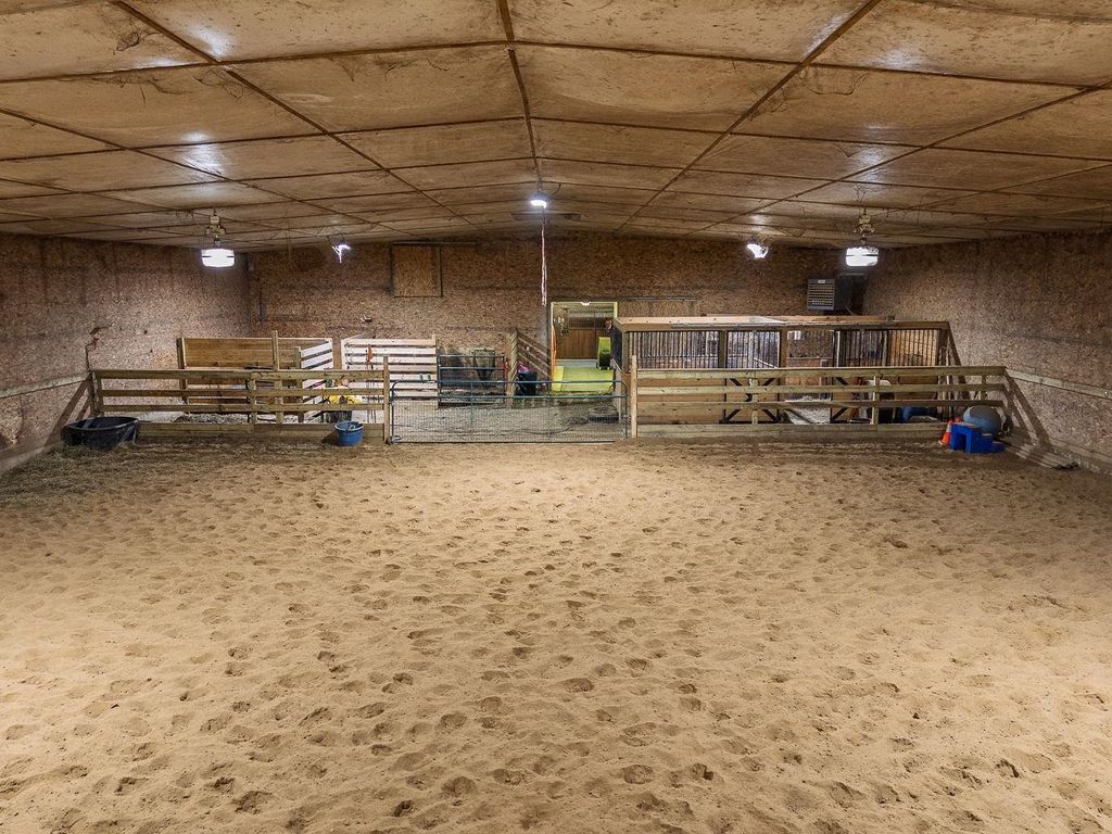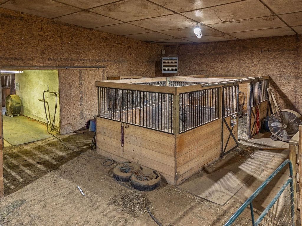 Exceptional 20-acre horse farm with top-notch equestrian amenities! Features 16 heated stalls plus 6 non-heated stalls ideal for quarantine, indoor arena, multiple paddocks and pastures, lean shelter, and ample hay storage. Horse care is a priority with matted stalls and aisles, plus owner's tack room and boarder lockers. A trainer/manager apartment provides on-site convenience. The main residence offers large bedrooms, billiard room, excessive storage opportunity, and a unique fruit/wine cellar. A rare opportunity for serious equestrians seeking a fully equipped, versatile property! A lot of income potential for this one.