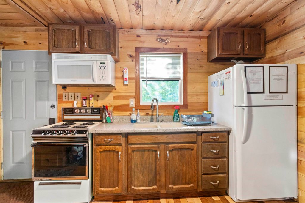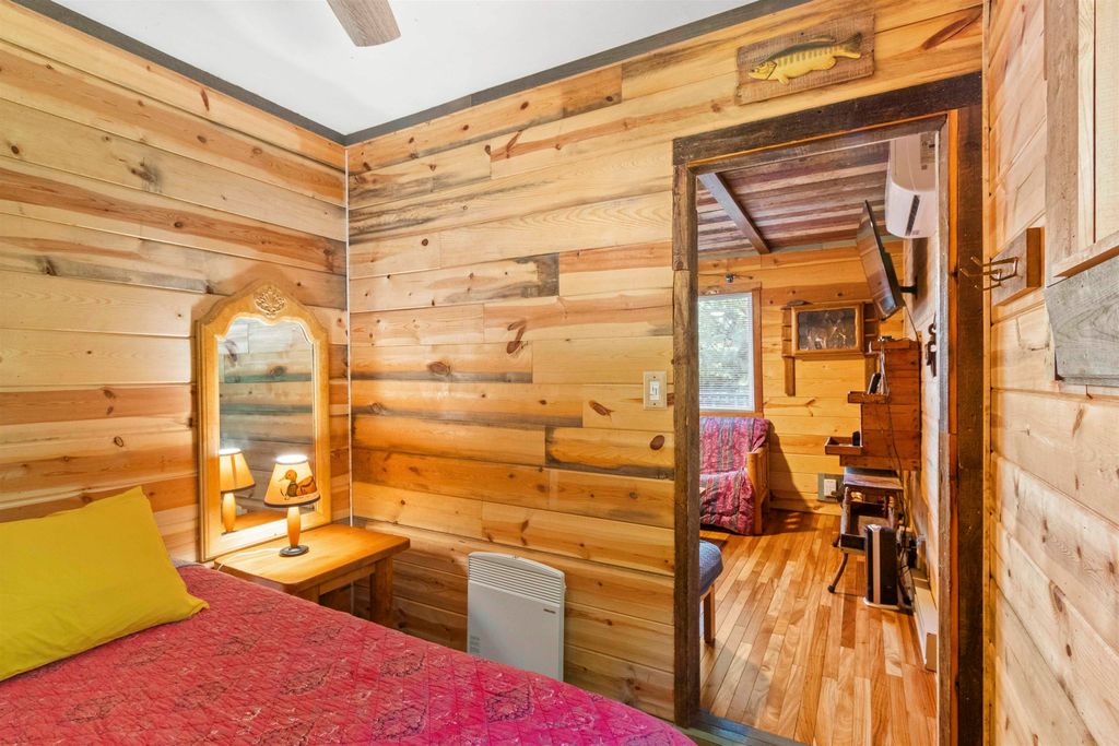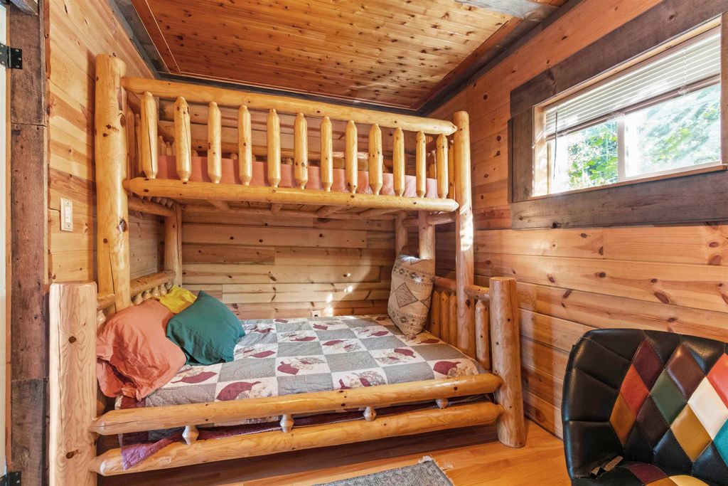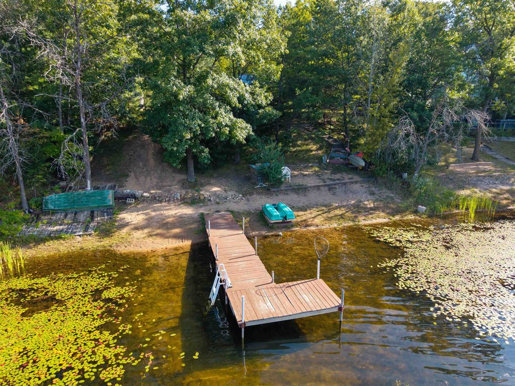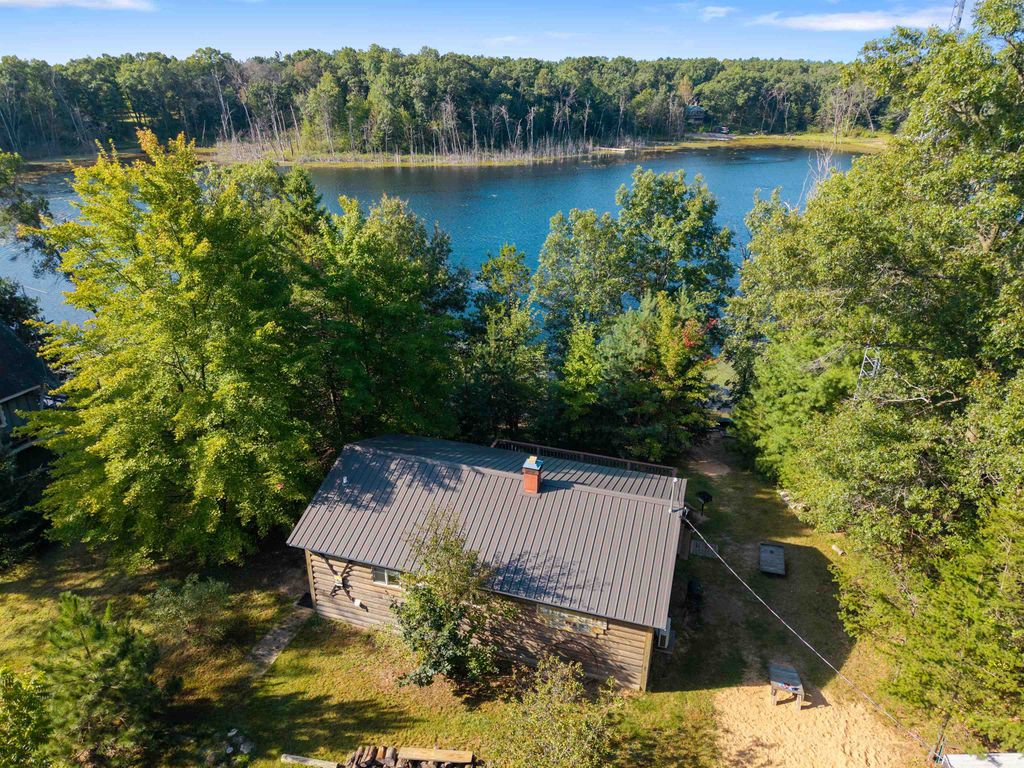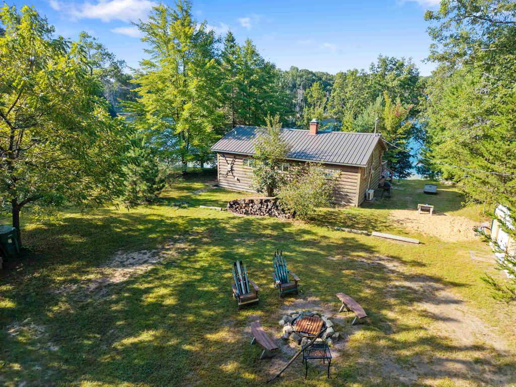 Escape to this stunning waterfront 2-bedroom cabin, custom-built with unique wood features and meticulous craftsmanship. The open floor plan offers a cozy wood stove, spacious living area, and sliding glass door leading to a large composite deck overlooking the lake, perfect for relaxing or entertaining. Ideal for boating, swimming, or enjoying the sandy beach, the pristine and quiet lake is supported year-round by aerators that keep the fishing exceptional. A private pier is included, making it ready for your boat or pontoon, and the property has a proven Airbnb rental history for turnkey income potential. Whether you're looking for a private getaway or an investment opportunity, this peaceful cabin delivers both in a rare and beautiful setting.