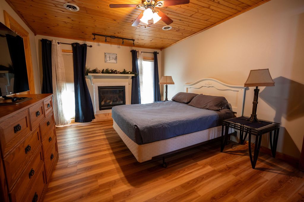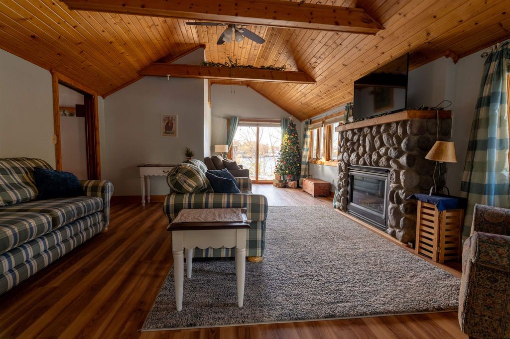 VPR ($350,000 - $375,000) Lake life and income potential all in one! This inviting 2BR, 1BA home sits on an acre with approximately 100 feet of waterfront and a private dock"”perfect for boating, fishing, or simply taking in the views. Currently a successful, fully furnished Airbnb, it's ready for continued rental income or your own year-round getaway. Inside, enjoy vaulted ceilings, two cozy gas fireplaces, a spacious primary suite with walk-in closet, and a bright four-season sunroom. Step outside to relax on the patio, gather around the firepit, and savor peaceful lakefront living.