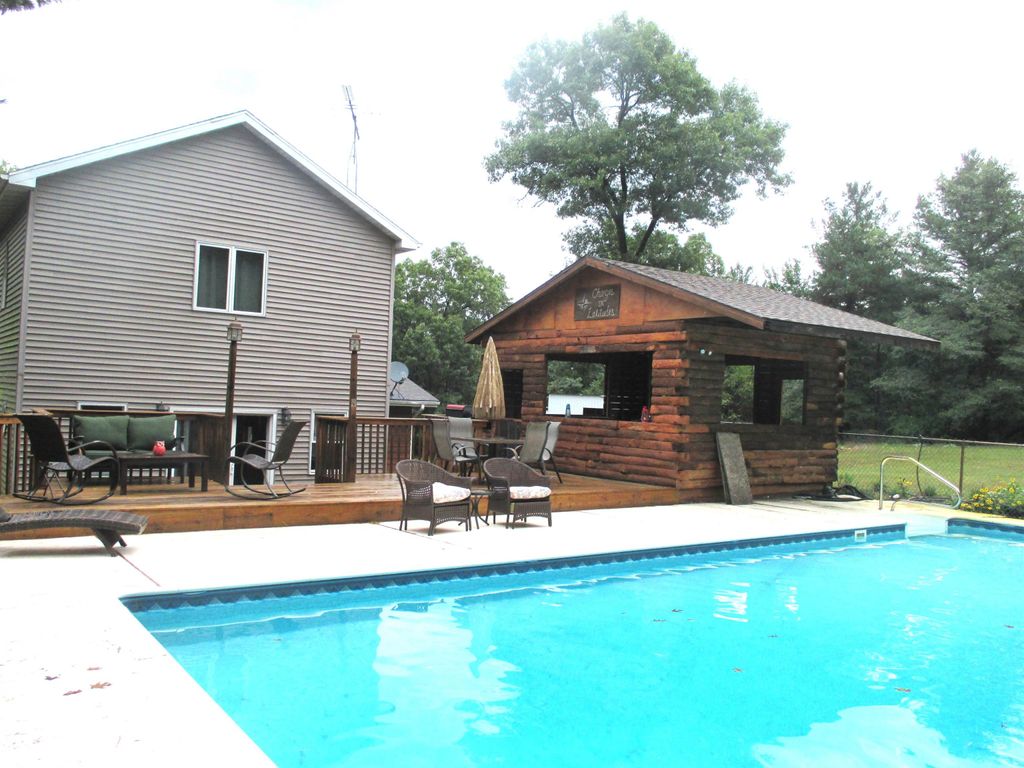 Almost 5 acres with shared deeded access to Buffalo Lake with in ground pool, BONUS!! This 3 bed, 2 bath contemporary designed split level home offers everything a large family needs year round or use as a vacation retreat. On the main level is the master bdrm, bath, nice size kitchen, large living and dining room for the entire family to enjoy. Lower level offers bedroom, bath, family room and with fireplace, office area and bonus rooms. Upper loft is currently being used as a bdrm. The in ground pool with bar hut and spacious deck is perfect for entertaining a large group. Very private wooded setting. Attached and detached garage with an additional outbuilding for storage. Minutes from town and yet, in the heart of of year round recreational activities.