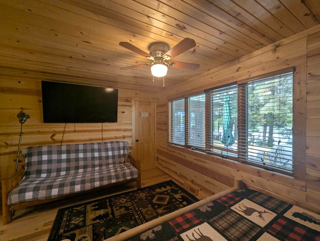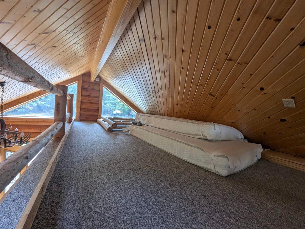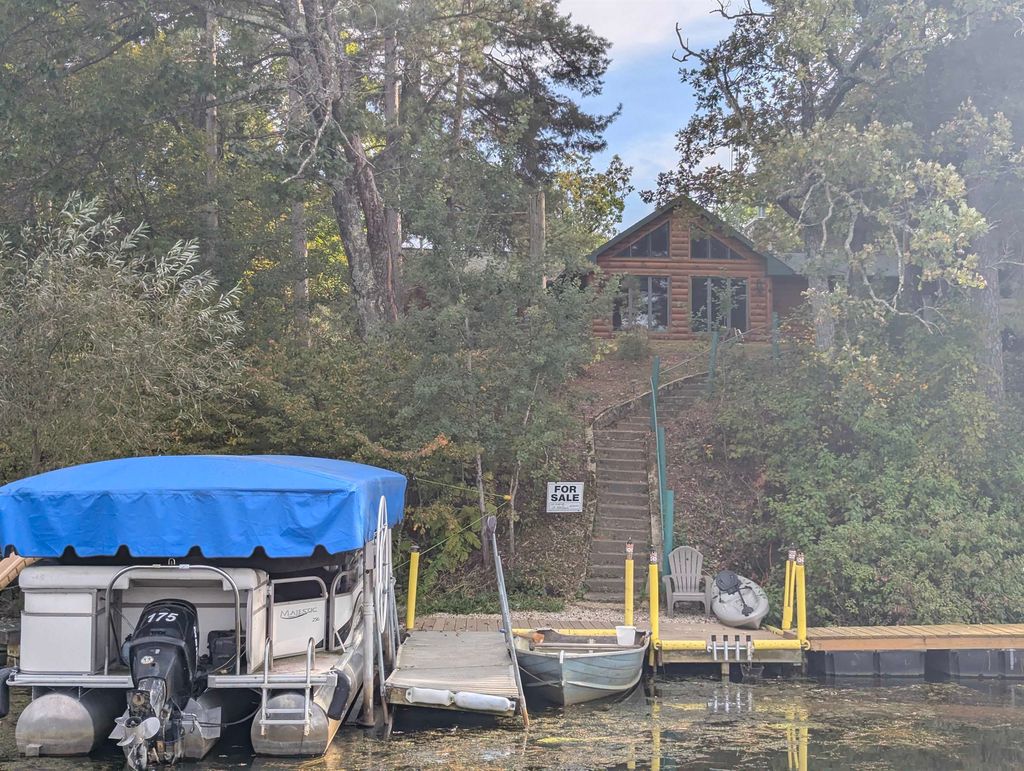 Lake life in the Fall & Winter, heck yes! Ice fishing, snowmobiling, X-country skiing THEN while you are recovering summer is right around the corner to enjoy boating, fishing & swimming! And did we mention VIEWS w/132' of Big Roche-a-Cri frontage & 1.88 acre lot? Personal use or Plug & Play (all set up for short-term rental use for extra income). This open plan1/2 log home w/ 3 sleeping rooms (no closets), primary BR, plus den & loft. Supersized LR/DR w/soaring ceiling & windows to lake! Granite counters, knotty pine walls & ceilings w/ gorgeous flooring in main rooms. Oversized garage w/lean-to, pier, appliances & furnishings inc PLUS possible pontoon, hot tub, etc negotiable.