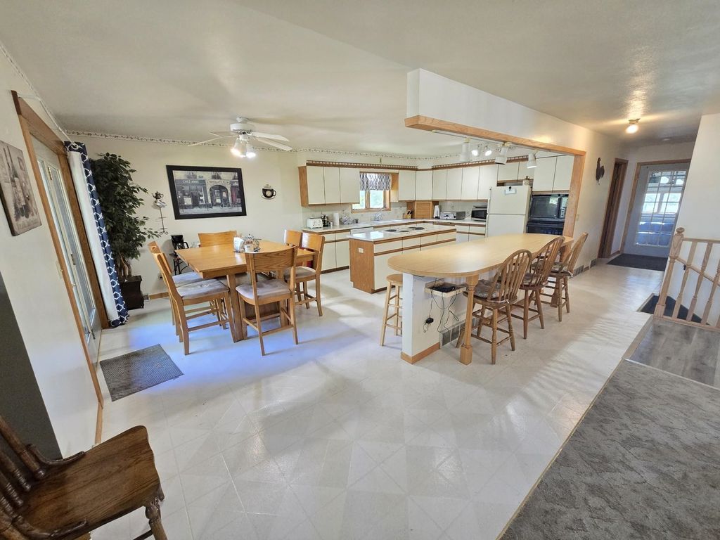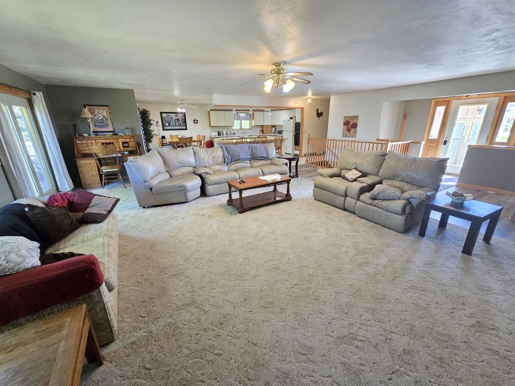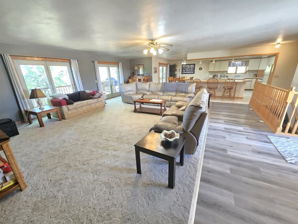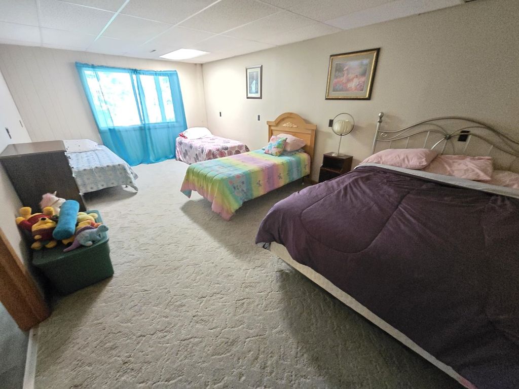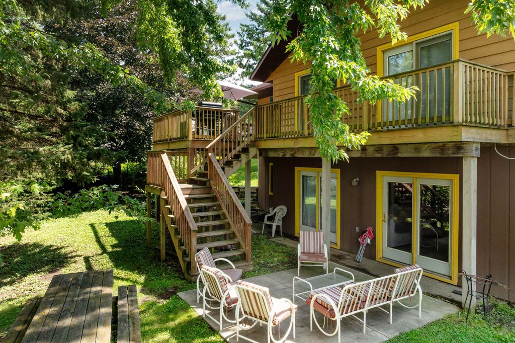 Way Bigger Than it Looks from the Outside. This 5 bedroom 2.5 Bathroom Ranch overlooks Little Green Lake and is just a short distance to Soldiers and Sailors Park and multiple lakes Boat launches. The Main floor features a Master Suite, Large Laundry, and a Giant wide open concept Kitchen/Dining/Living Room with multiple patio doors leading to the wrap around deck. Lower level offers 3 Bedrooms, Walk in Closets, Full Bathroom, Finished Rec. Room with a Bar and a walk out to the patio and backyard. Seller updates include: New Concrete Approach, 2 Forced Air Furnaces, Central Air, and Flooring.