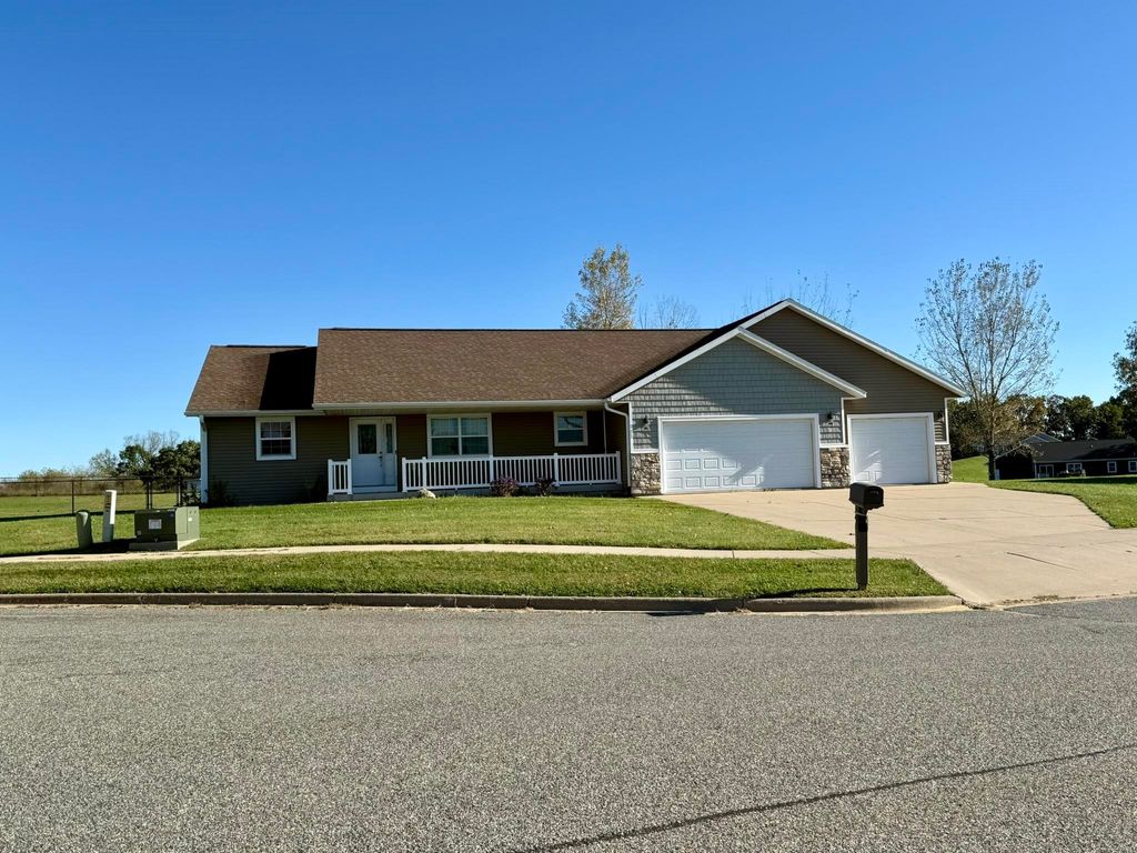 Solid Ranch Style home is now available for new ownership. This property is 11 years new and offers 3 bedrooms and 2 full bathrooms. You enter the home to your great room, with vaulted ceilings and mostly open to the kitchen. The kitchen has custom cabinets with back splash, all appliances are included. The main bedroom has a large walk in closet with a tiled tub and shower. The other two bedrooms are on the opposite side of the house with a full bathroom between the rooms.  A 3 stall attached garage with shelves, that is sheeted and insulated as well.  This is a move in ready home with a full basement that is a blank easel that is ready for your finishing touches, it is also stubbed in for a third bathroom. This home sits on the end of a cul-de-sac, so low traffic count! Call today