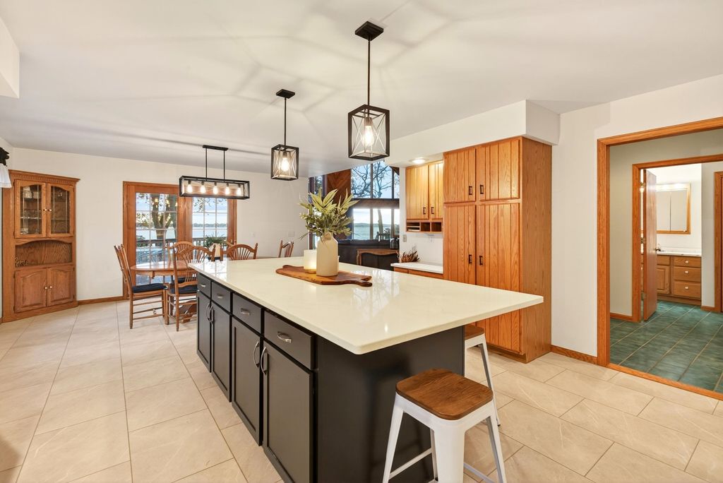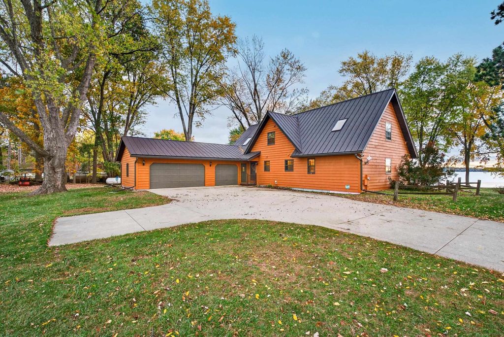 A rare offering on Lake Puckaway, this one-owner estate showcases over 200' of level riprapped frontage across 1.3 acres. Known for it's excellent fishing, boating, and stunning sunsets, this 5000-acre recreational lake in central Wisconsin, offers a peaceful northwoods feel just a short drive from major cities *Conveniently about 1.5 hours from Madison, 2 from Milwaukee, 4 from Chicago, and 5 from the Twin Cities* The 3-bedroom residence captures panoramic water views from every room and features an updated kitchen, spacious living areas, attached 3-car garage, and a full unfinished basement ready for expansion. Whether a refined full-time residence or vacation retreat/rental, this lakefront property defines elegance, privacy, and opportunity