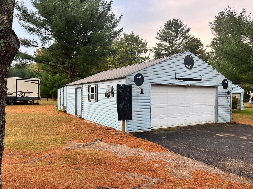 Northern Adams County Bighorn Ave Retreat, 1.25 Acres, 132' x 362' with driveway leading to 24' x 32'Garage with 24' x 12' storage wing, 2015 Travel Trailer with Deck, has well and septic, electric service. Awesome 30' x 54' Pole Barn with cement floor, electric, kitchen/office area, loft storage, 12' side walls, over head door, outstanding setting with Fire Pit, located just a few miles from Sand Valley Golf Courses & Rome Lakes Area, outstanding recreational area, ATV friendly area