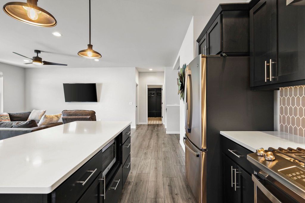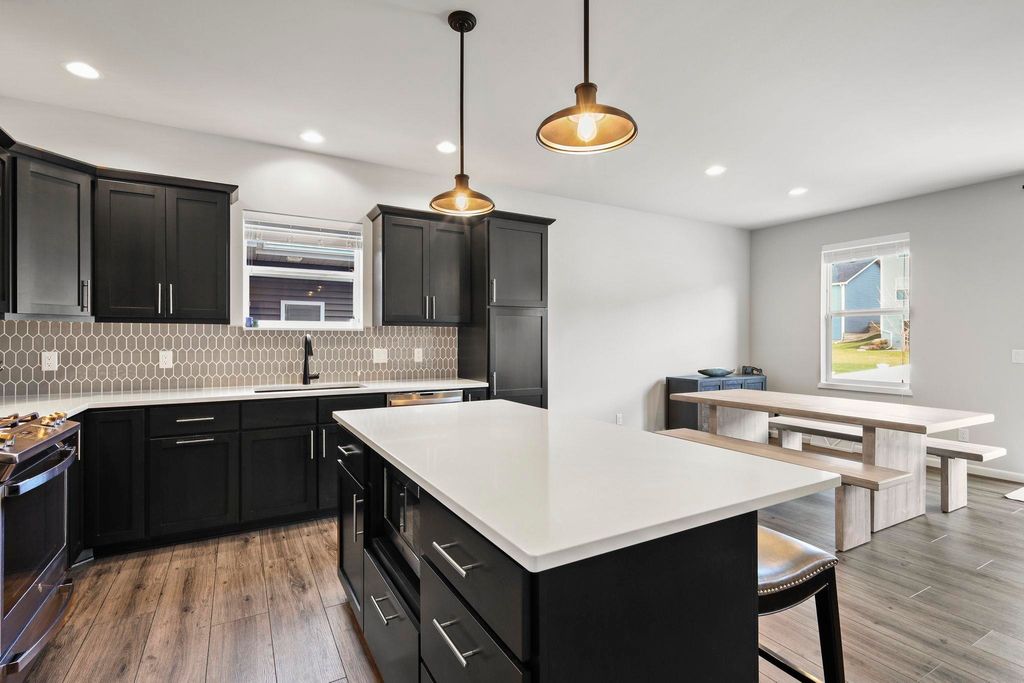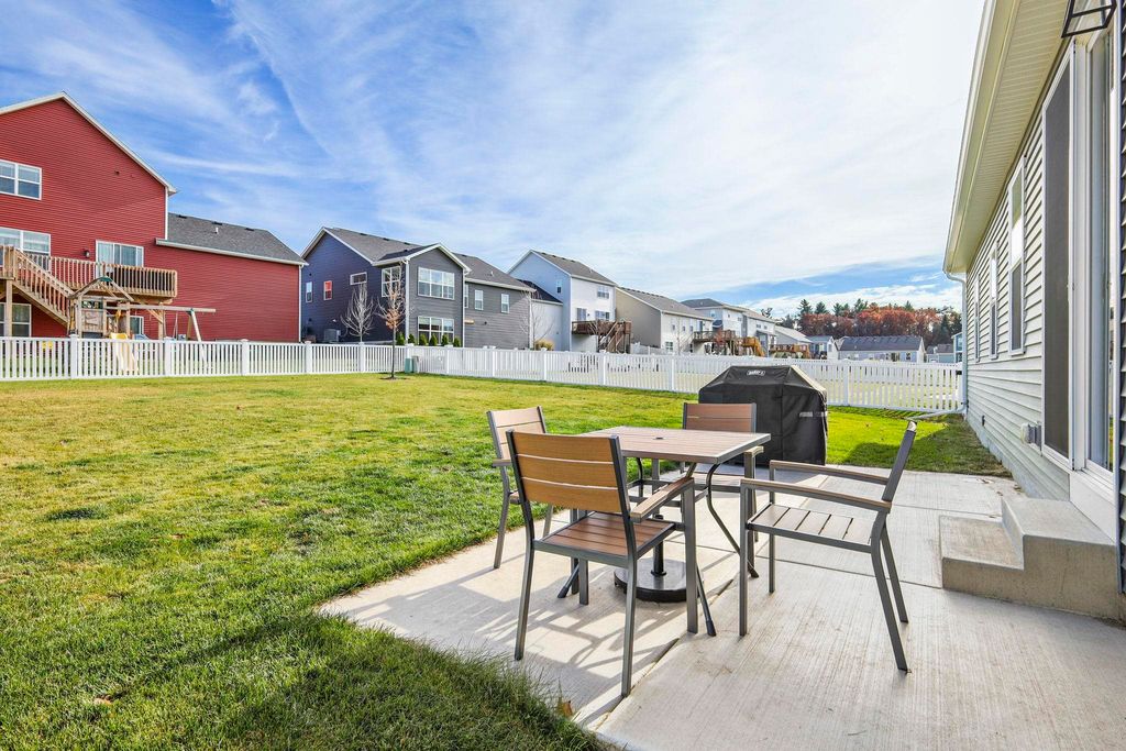 Charming 3-bedroom, 2-bath ranch home with fenced yard, ideal for pets, gardening, or outdoor entertaining. The open kitchen features quartz countertops, tiled backsplash, quality cabinetry, and a large island perfect for meal prep or gathering. The primary suite includes a walk-in closet and a tiled bath with walk-in shower, bench seating, and quartz vanity. Second bath offers a tub/shower combo, LVT flooring, and matching quartz. Main floor laundry includes built-in lockers, tile flooring, and extra storage. Lower level has painted floors and is ready for future finishing - think future rec. room, gym, or office potential! Close to walking trails, parks, Verona schools, Epic, and dining options.