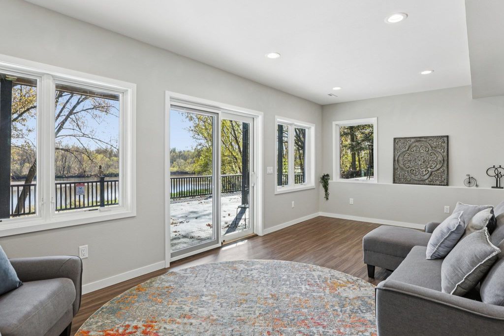 Executive home on the Wisconsin River - Fully remodeled within the past six years, this executive home on the Wisconsin River blends modern comfort, light, and nature. Enjoy panoramic river views from the open living, dining, and kitchen area with large windows and skylights. Features include a maintenance-free full-length deck, expansive patio, floating boat dock, boathouse, two full bedroom suites with walk-in showers and closets, plus adjoining offices. Two kitchens, two laundry rooms, and bright, open spaces make it ideal for remote work, multi-generational living, or a vacation rental. Just 5 min to Lake Wisconsin, Cascade Mountain & I-90, and 25 min to Wisconsin Dells.