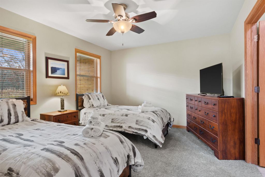 Low-maintenance living on a gorgeous golf course! This side-by-side condo offers everything on one level and is a proven rental performer. Fully furnished with 4 BR, 3 BA, it's ready to rent or move right in! (Everything remaining is included) Overlooking Hole #5 of the Lakes Course, enjoy the view from the covered back porch. Inside features a wood cathedral ceiling, natural gas fireplace, main-floor ensuite & laundry. Lower level adds 2 BRs, full bath & great storage. New roof in 2022 and has a 2 stall attached garage! Walk to the South Lake Center for beach access, or enjoy heated pools, pickleball courts, workout room & more at the clubhouse!