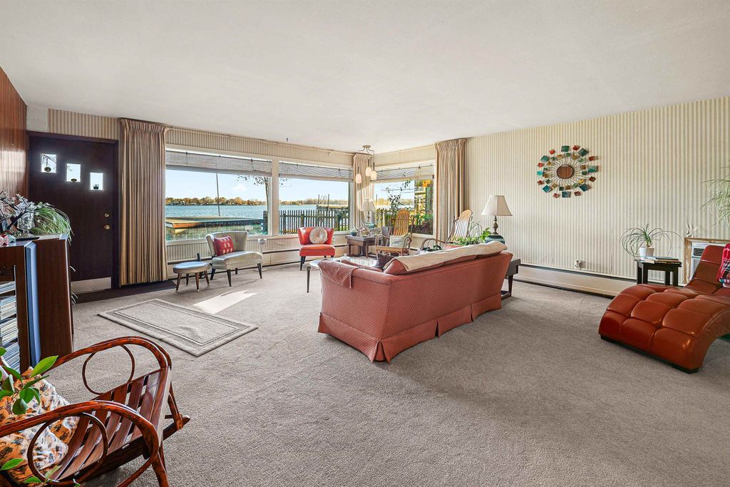 Enjoy lakeside living in this rare 4-bedroom year-round home on Fox Lake with 50' of prime hard-bottom frontage. Panoramic views, abundant storage throughout, spacious living areas, and a classic brick fireplace that anchors the room. New roof installed Sept 2025. Boathouse and pier included for easy lake access. Large primary bedroom, great natural light, fenced yard, and plenty of room for guests. An ideal full-time home or getaway, just 60 mins to Madison, 90 mins to Milwaukee, and under 3 hours to Chicago.