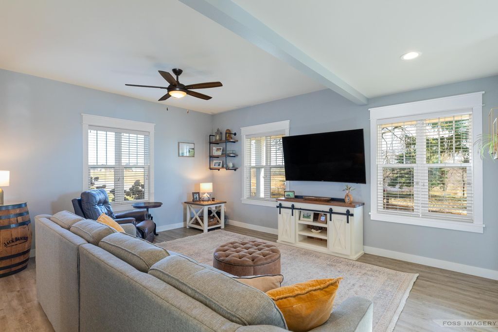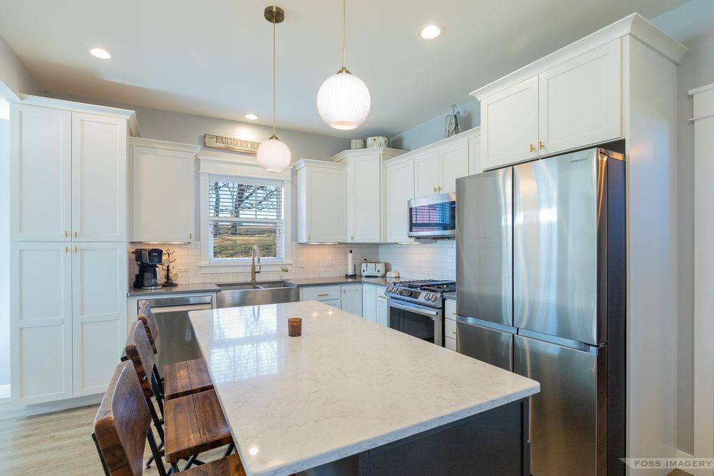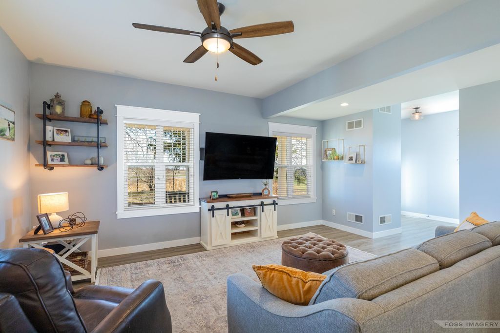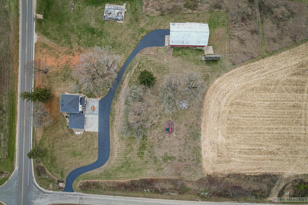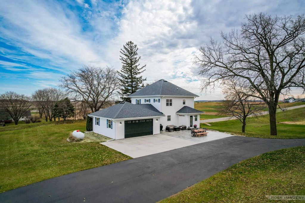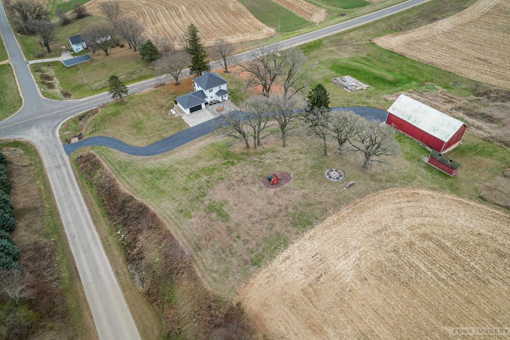 Beautifully updated home, fully remodeled inside and out in 2017, with new appliances and carpet in 2025. Sun-filled living spaces lead to a spacious kitchen with a large island. Enjoy first-floor laundry, a powder room, and a mud room. The primary suite offers a walk-in closet and full bath. Two spacious guest bedrooms share a bath with an oversized vanity. Outside features include a paved driveway, stamped patio, and fire pit for summer nights. Heated garage and a 62x35 barn offer great flexibility. All set on a property with views for miles, just a short drive to Madison.