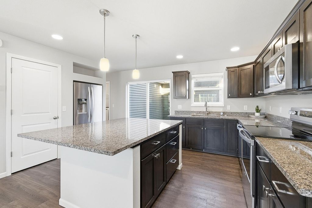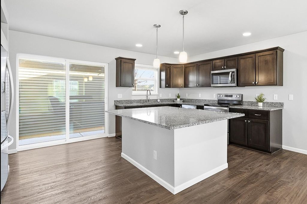 Beautiful and modern, this energy-efficient 3 bedroom, 2.5 bath home offers an open-concept layout designed for both comfort and style. The spacious kitchen features a large island - ideal for cooking, dining, and entertaining - and is complemented by high-end finishes throughout the home. The primary suite includes a private full bath. The full basement is stubbed for a bathroom, providing a great opportunity to add even more living space. Enjoy the convenience of first-floor laundry, a private patio, and an attached oversized 2-car garage. Situated in a vibrant neighborhood close to parks, shops, and restaurants, this is an exceptional place to call home.