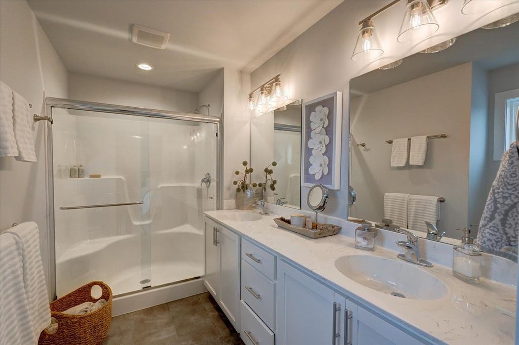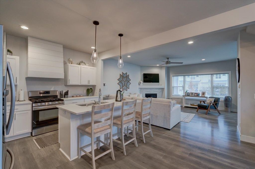 A thoughtful design meets an environmental corridor showcasing sustainability. This "Twin Home" welcomes you w/ a large private front porch overlooking a park. An open layout dawns a warm gas FP & a kitchen anchored by a generous quartz-topped island, SS appliances & huge pantry. Side deck offers a tucked-away nook for grilling. Upstairs, a luminous primary suite - private ensuite w/ double sinks & walk-in closet - split bed layout & a separate laundry rm. A mudrm bench & hooks keep life organized, while the lower level, w/ 9' ceilings, beckons your imagination for future expansion. In Terravessa"”a forward-thinking, green-centered community built for connection w/ a coffee shop, elementary school, bike/pedestrian paths--this home isn't just a place to live; it's a place to belong.