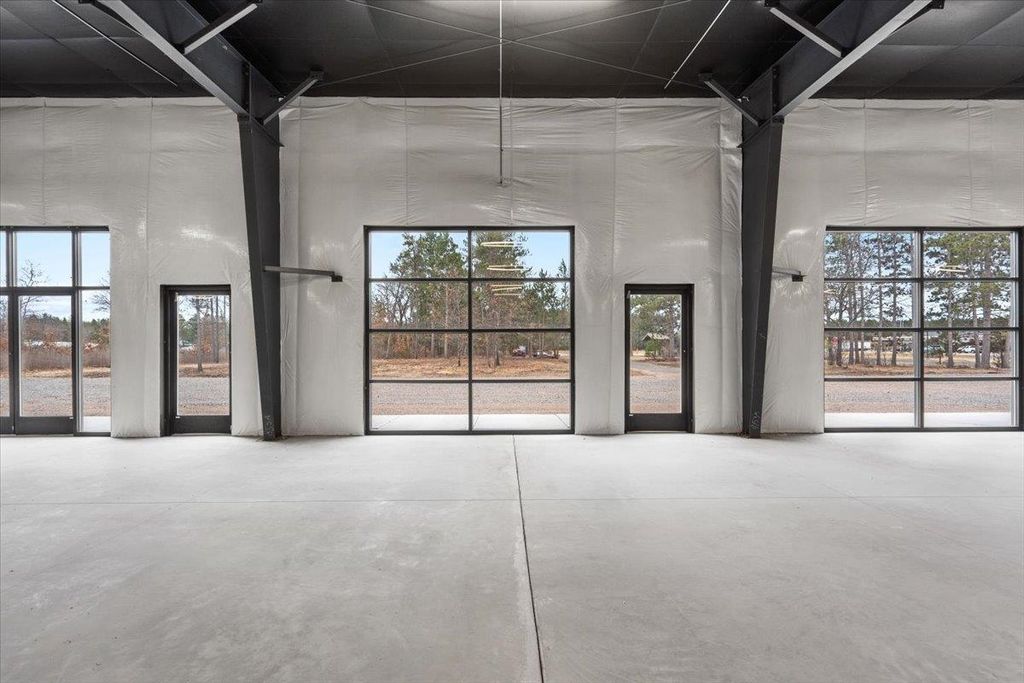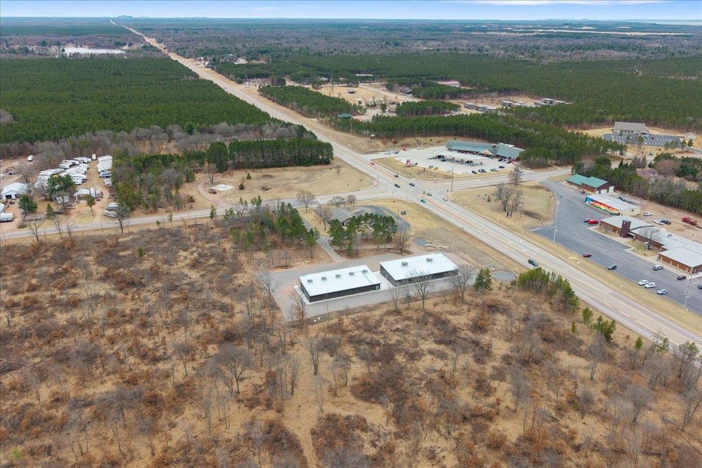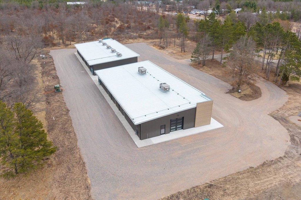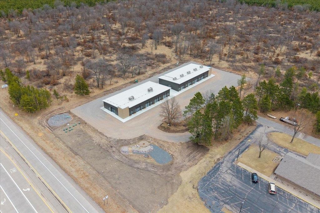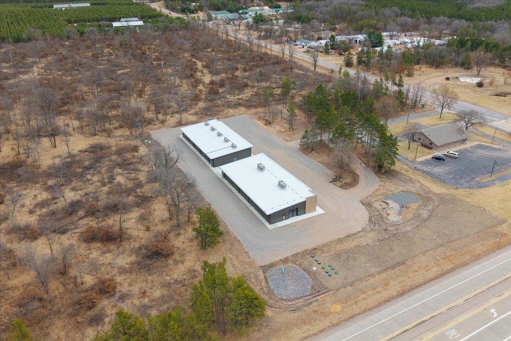 Step into irresistible possibility. One striking brand-new 5,500 sqft commercial building, customizable, & on 2.41 acres along a high-traffic state highway. Nearby to KwikTrip, Sand Valley Golf Resort, Lake Arrowhead Pines Golf, & two stunning lakes. Large windows offer sun-drenched interiors w/ modern, elegant design. Perfect for coffee shops, offices, & boutiques. The Sands East building can be divided into four 1,100 sqft units, framed & finished, each with private baths, & included by the seller. Outside features a large paved parking lot (included), shared commons, & firepit area. Built for visibility, designed to captivate!