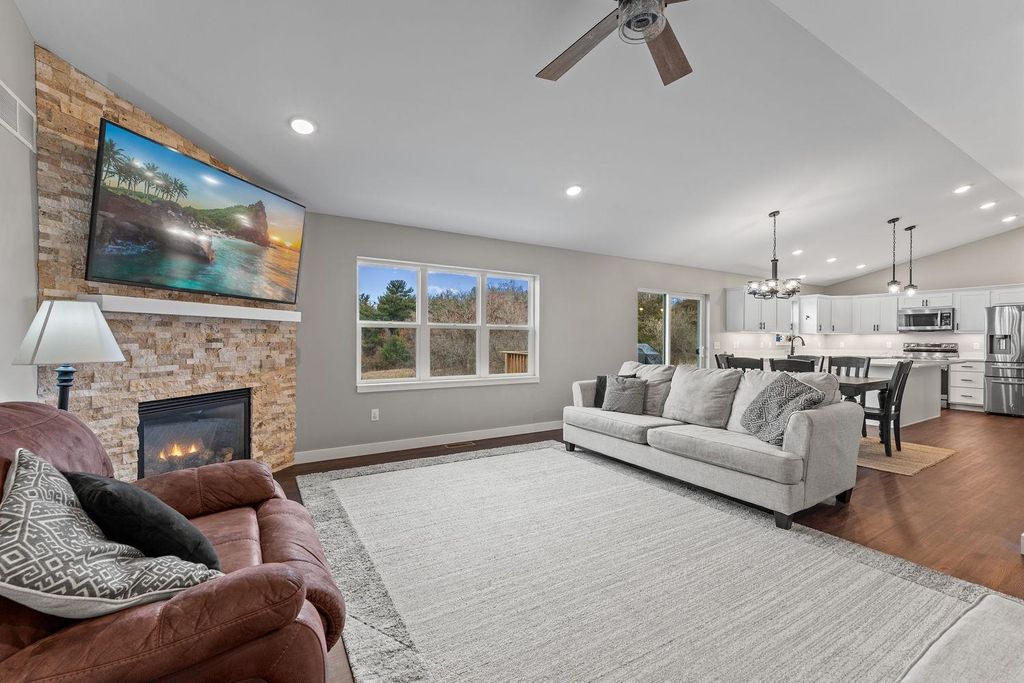 Prime location in Reedsburg on the end of a quiet cul-de-sac! This 4 Bedroom, 3 Bath Ranch style home truly has it all--including a newly finished walkout basement. You will love the open floorplan, vaulted ceilings, cozy stone fireplace, and convenient main level laundry. The bright kitchen features quartz countertops, a large island, stainless steel appliances, and an oven with a built-in air fryer. The newly finished lower level adds even more living space with an additional bedroom, bathroom, office/workout room, and plenty of storage. Enjoy peaceful views from the deck or backyard patio. The oversized garage and storage shed provide ample room for bikes, tools, and all your gardening essentials. Move-in ready and packed with desirable features"”this one won't last!