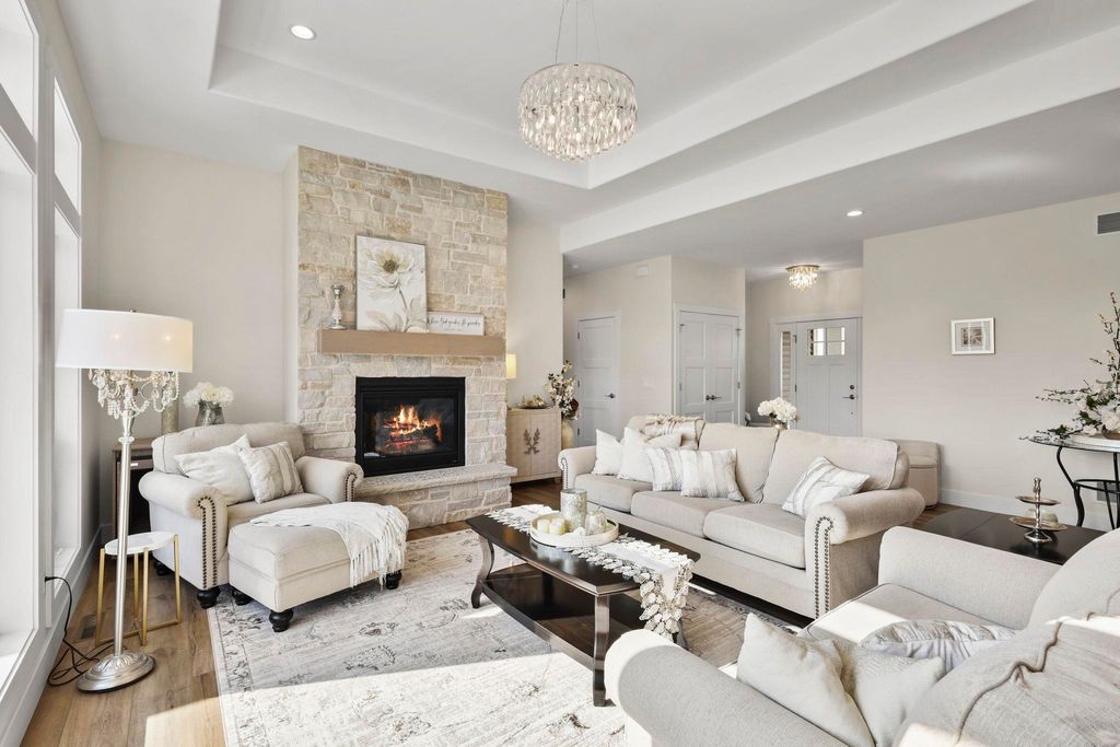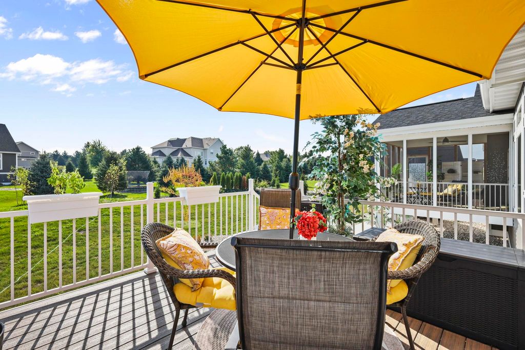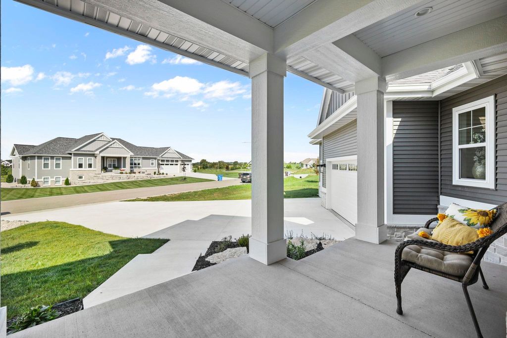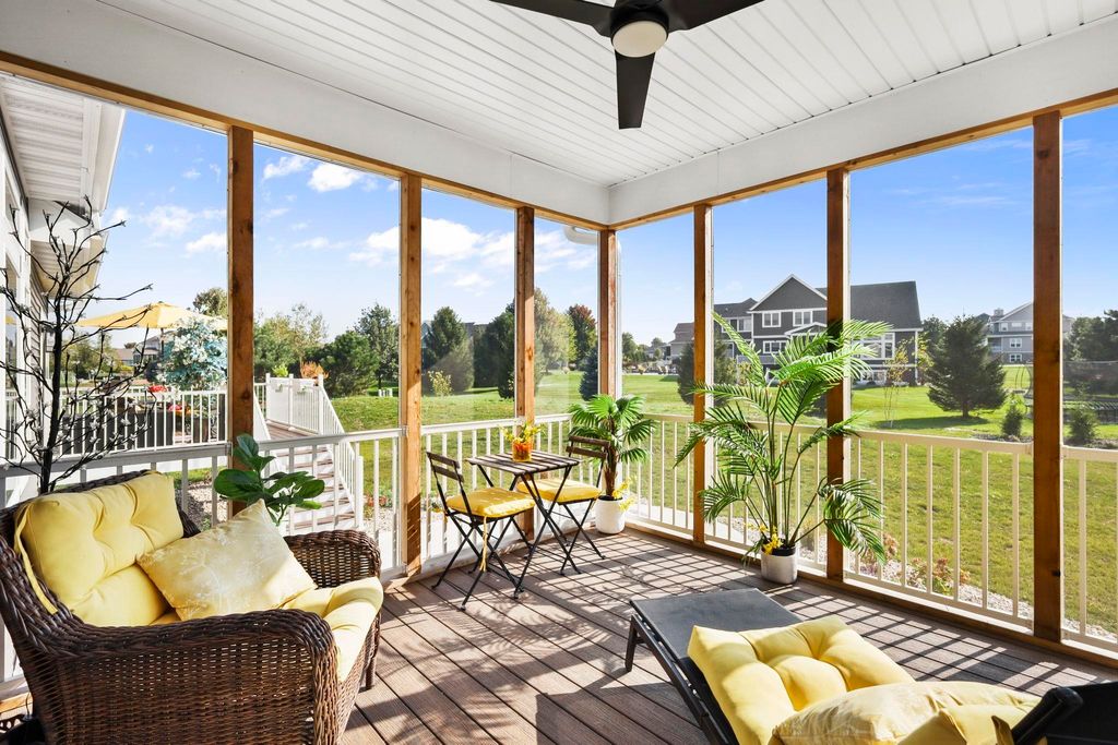 Luxury living without the wait! Move right into this brand-new custom ranch in the Windsor subdivision. Enjoy morning coffee on the private screened porch off the primary suite, the front porch, or the spacious deck overlooking newly added trees, upgraded landscaping, and a cement patio with a built-in fireplace. Inside features an open floor plan with gas fireplace, gourmet kitchen with island and walk-in pantry, plus upgraded lighting and closet systems. The luxurious primary suite includes a sitting area/office, spa-like bath with tiled rain shower and soaking tub, and a dreamy walk-in closet. Lower level with full windows and stubbed bath is ready to finish. Subdivision offers parks, walking/bike trails and a baseball field.