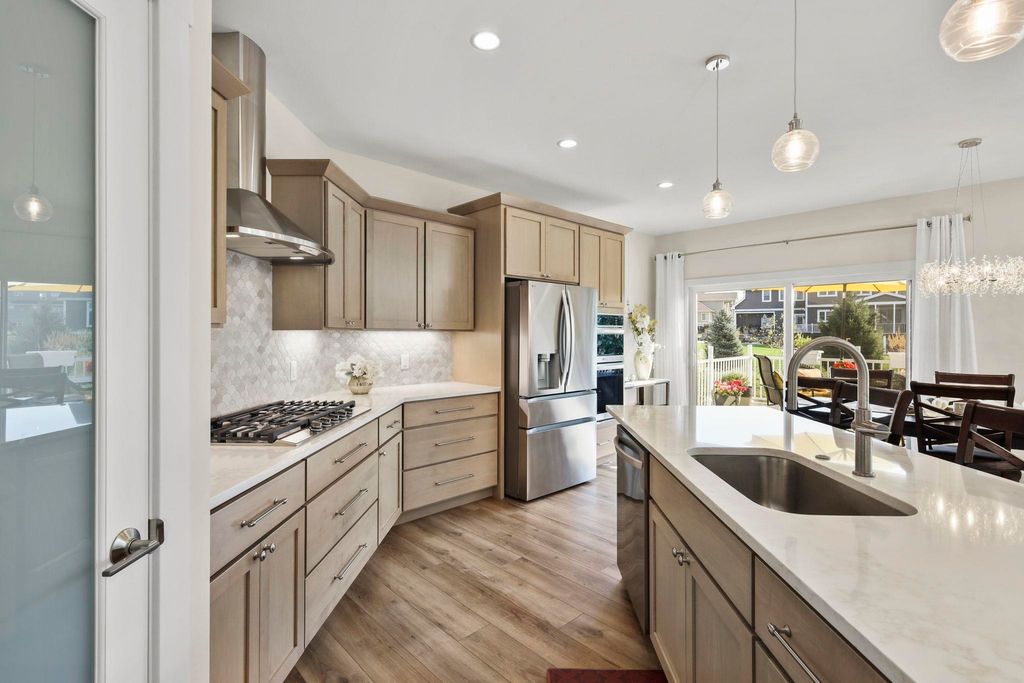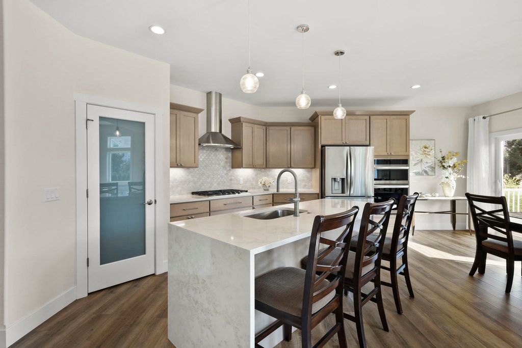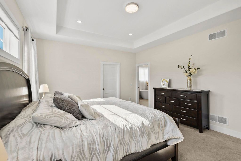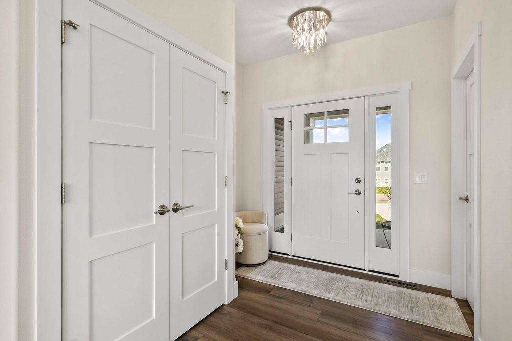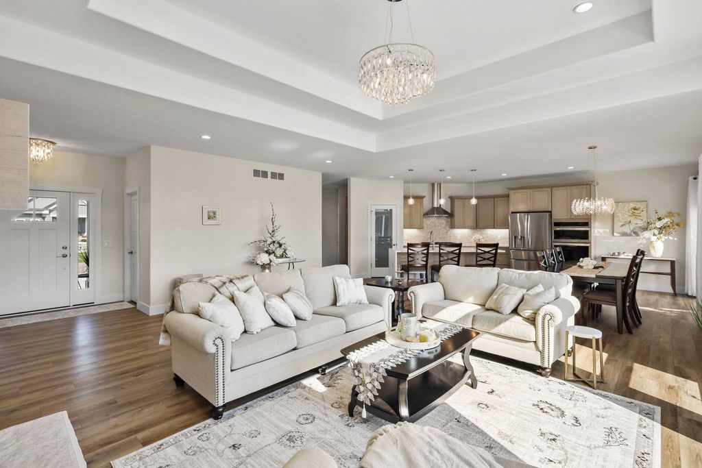Luxury living without the wait! Move right into this brand-new custom ranch in the Windsor subdivision. Enjoy morning coffee on the private screened porch off the primary suite, the front porch, or the spacious deck overlooking newly added trees, upgraded landscaping, and a cement patio with a built-in fireplace. Inside features an open floor plan with gas fireplace, gourmet kitchen with island and walk-in pantry, plus upgraded lighting and closet systems. The luxurious primary suite includes a sitting area/office, spa-like bath with tiled rain shower and soaking tub, and a dreamy walk-in closet. Lower level with full windows and stubbed bath is ready to finish. Subdivision offers parks, walking/bike trails and a baseball field.