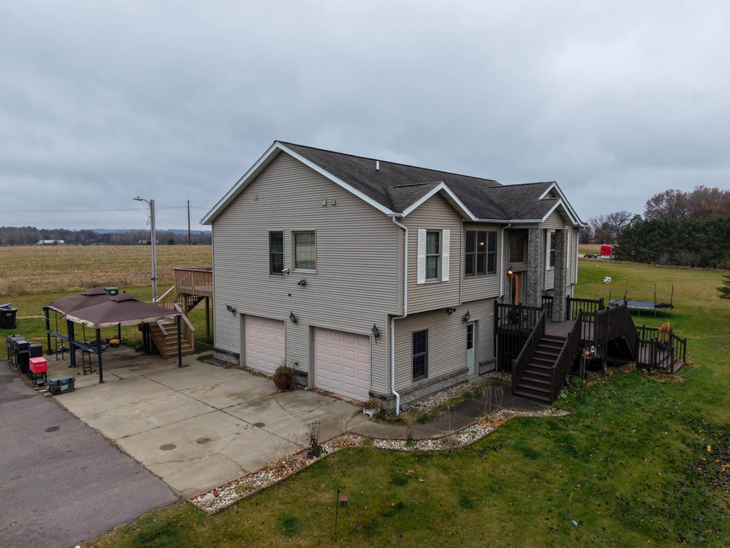 Just 7 minutes from Tomah, this 5-acre property offers a spacious 3,200 sq. ft. home with 4 bedrooms and 2.5 bathrooms. The front entry, highlighted by tall brick columns, makes a strong and welcoming first impression. Inside, the home features a functional and open layout with a dedicated dining room and plenty of living space for family and guests. The basement and garage include in-floor heat, keeping the home comfortable and efficient during colder months. Front and back decks provide extra space for relaxing, entertaining, or enjoying the outdoors. Multiple sheds on the property offer versatile storage and workspace for tools, equipment, or hobbies. With a blend of privacy, space, and convenience, this well-maintained property is perfect for anyone looking for country living while sta