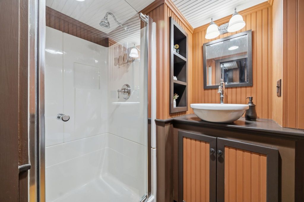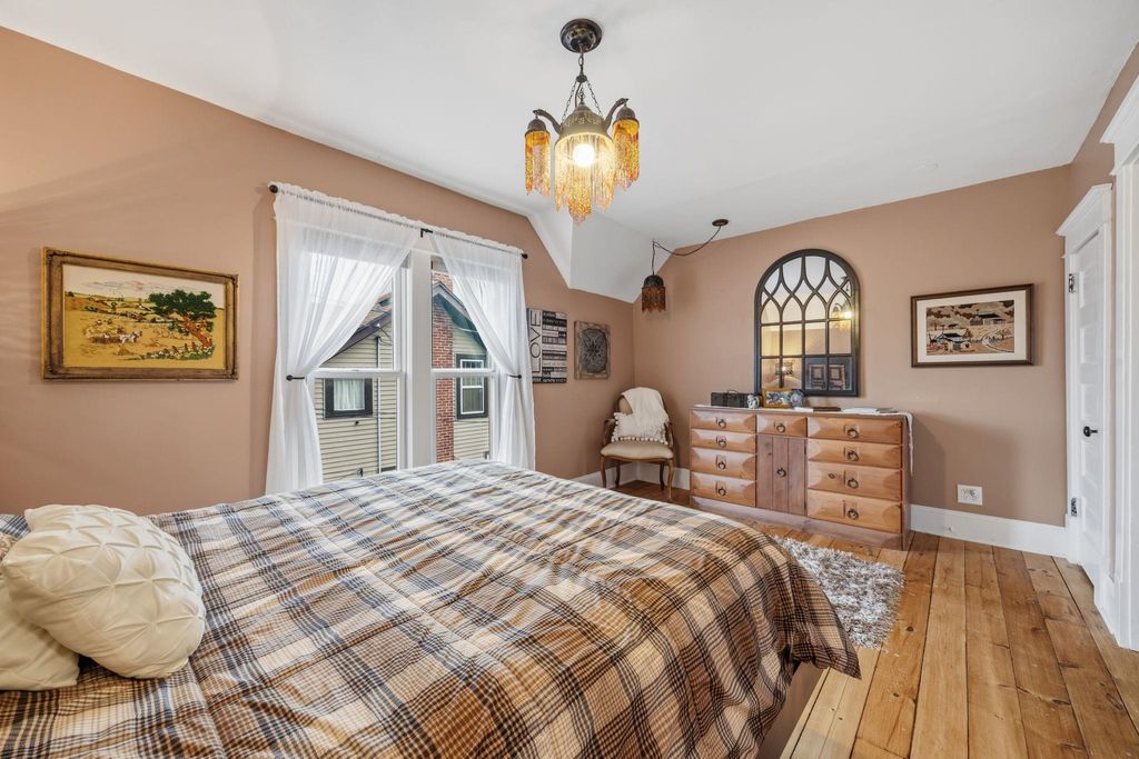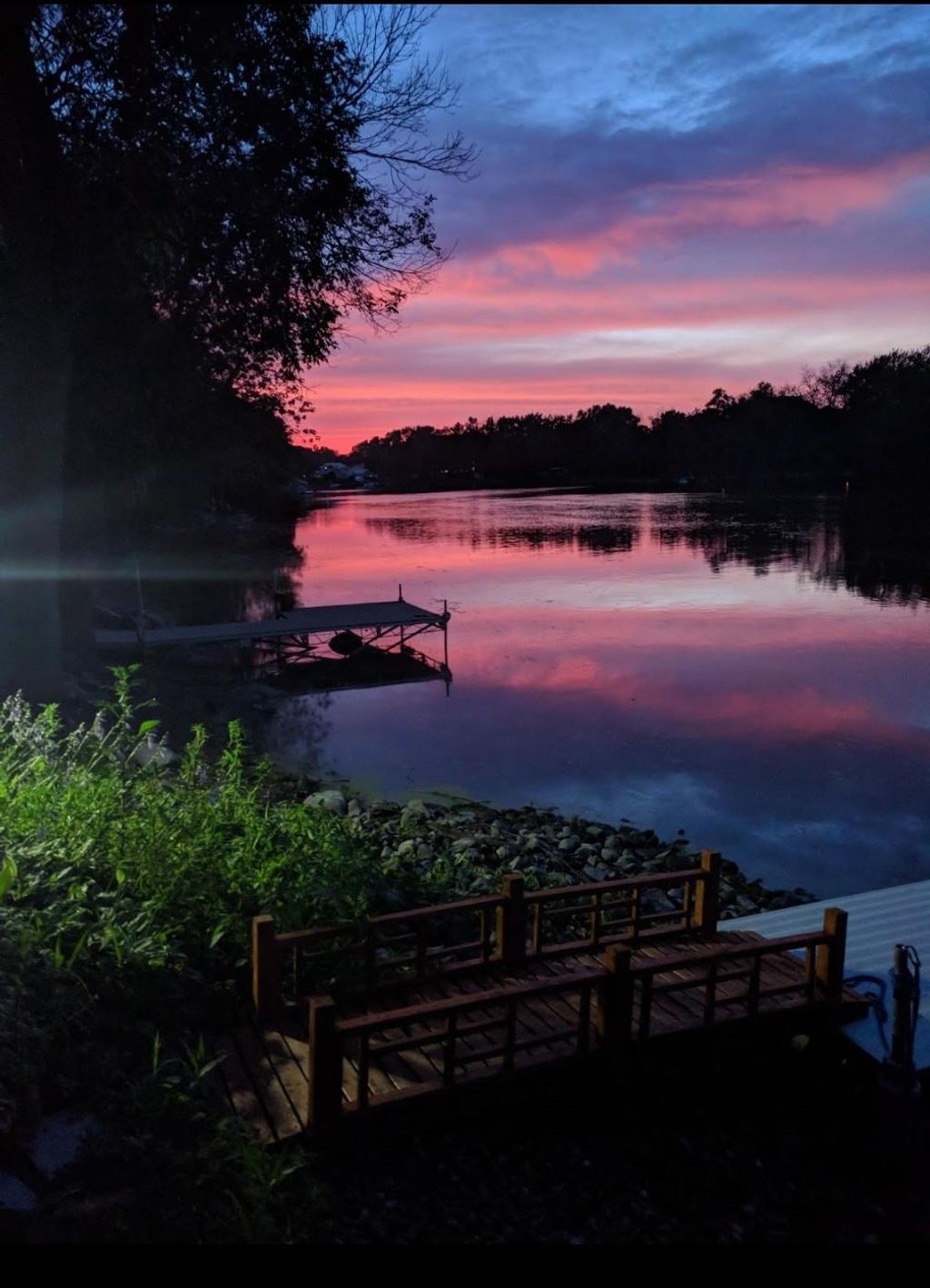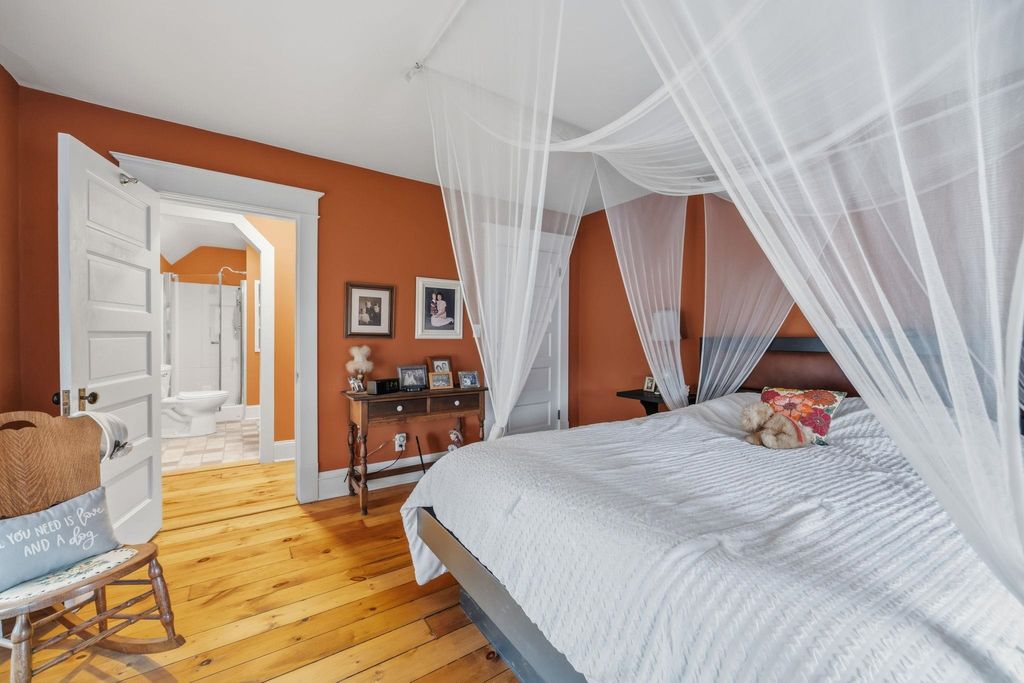 BRING YOUR BOAT! Experience riverfront living at its finest in this historic-charm home enhanced with modern amenities. Enjoy private river frontage with a 16-ft pier, for boat docking, fishing, or launching the included kayaks. Inside, hardwood floors flow throughout sun-filled spaces, including a sunroom with sweeping river views and a kitchen where granite countertops frame views across the garden to the water. Each bedroom features its own full bathroom, and the luxurious primary suite offers a vaulted ceiling, walk-in closet, stunning river views, and a skylit primary bath. The finished basement adds flexible living space with a full bathroom, pellet stove, egress window, and built-in bookcases. Outdoor living shines with three freshly stained decks overlooking the river, a perennial-