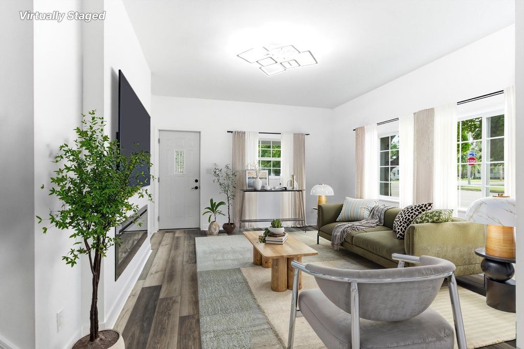 The Home With All the Flex! This isn't just a remodel"”it's a full-on rebirth. This 4-bedroom, 1-bath stunner has been transformed from top to bottom: new roof, siding, windows, doors, waterproof & antimicrobial flooring, carpet, fixtures, appliances, counter tops, cabinets, AC & 200-amp electric. The kitchen steals the show with quartz countertops, an extra-large island made for gathering, and a beautiful built-in fireplace that sets the mood. A spacious lower-level family room adds even more living space. Spa-worthy bath with Bluetooth lighting, dual sinks, soaking tub & tiled walk-in shower. Private patio off the primary, charming front porch with swing, 1.5-car garage + storage shed, and a partially fenced yard. Exterior lighting runs through the XMcosy app for year-round seasonal displ