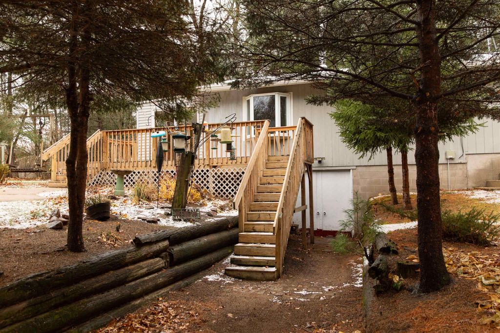 Enjoy peaceful country living on 3.3 beautiful acres! This inviting 3-bedroom, 1.5-bath home has been thoughtfully updated: roof (2021), windows (2019), deck (2020), shower (2025), and free-standing wood stove (2020). Step inside to find a cozy free-standing stove, plus a luxurious new spa shower. Detached Wick-built pole shed features an opener, parking for two cars, and workspace. Paved concrete driveway for easy access and snow removal. The basement features a stainless steel sink and counter, ideal for preparing food from the garden or cleaning up after outdoor adventures. Enjoy watching birds flock to the feeders and wildlife year-round from your deck, 3-season porch, or kitchen and dining area. This property offers the perfect blend of comfort, functionality, and natural beauty. It's
