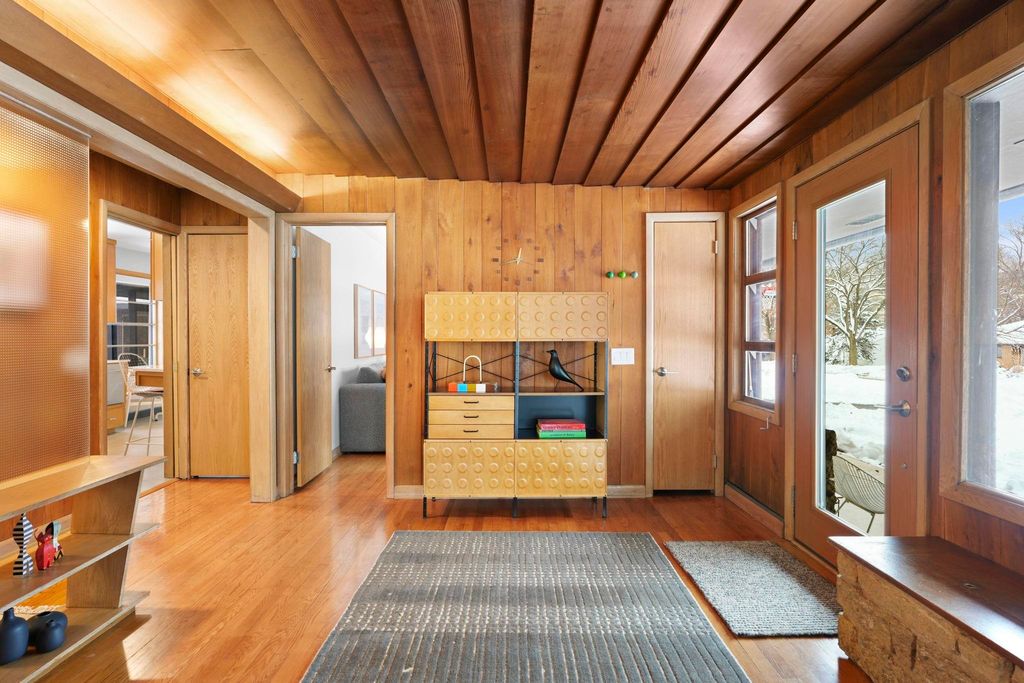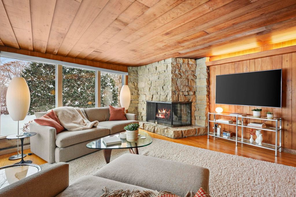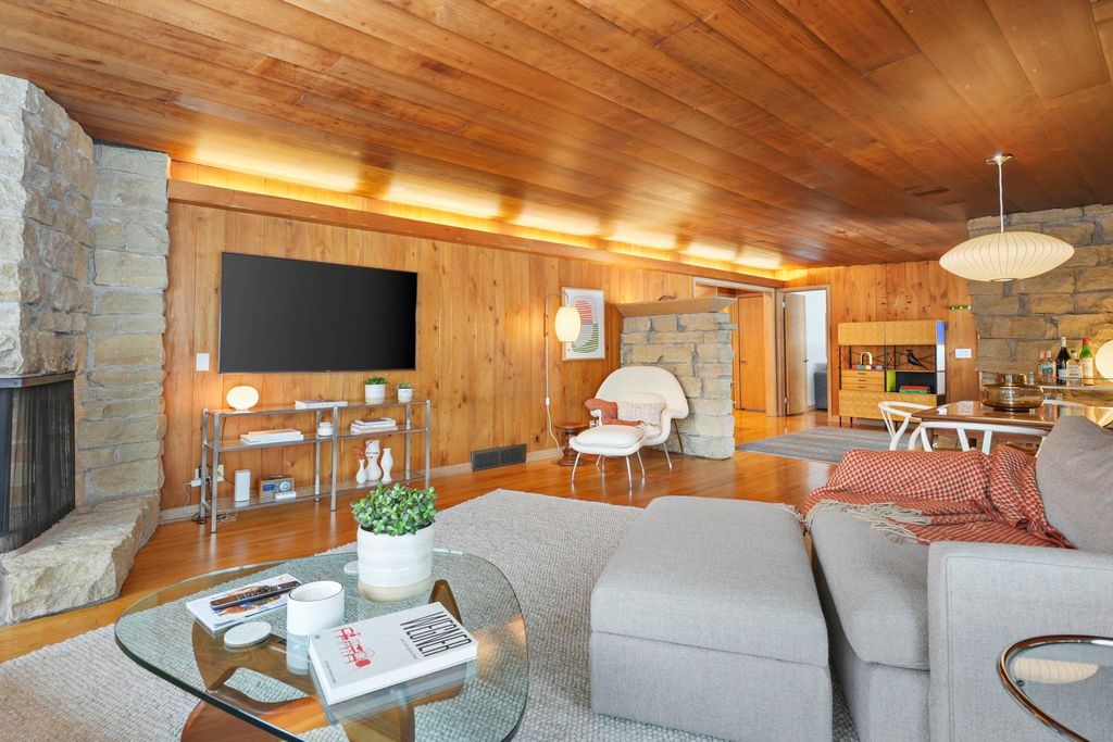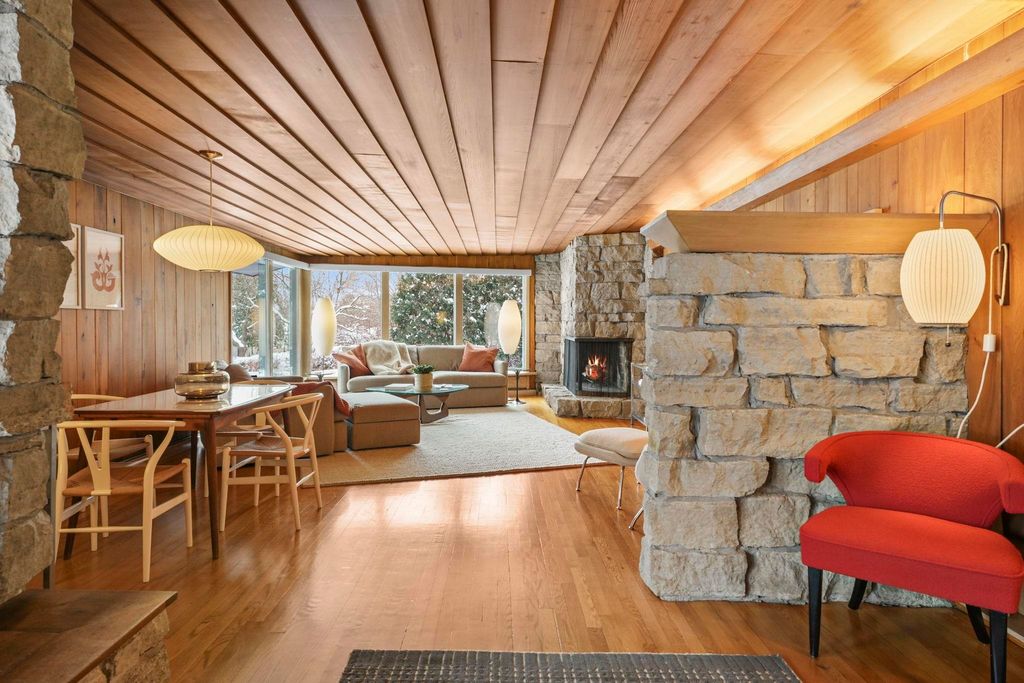 Rare mid-century ranch in Indian Hills, renewed with care to preserve its architectural character while elevating everyday living. Floor-to-ceiling windows brighten the shiplap ceiling, wood paneling, and Lannon stone fireplace that define the open living and dining areas. The period-inspired kitchen pairs custom angular cabinetry with heated floors, updated fixtures, and stainless appliances. Flexible lower level living functions as a guest suite with a snack bar, SMEG fridge, two Murphy beds, gym area, full bath with new shower door, and a finished laundry room with sink and storage. Updates include new exterior and garage doors, exterior paint, sealed drive, re-screened hopper windows, new hardware, window treatments, closet systems with lighting, refreshed finishes, can lighting, Ecobe