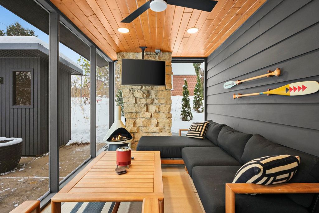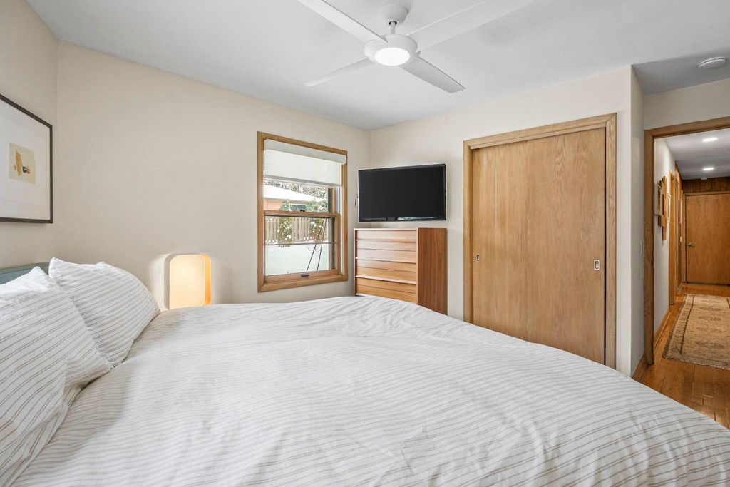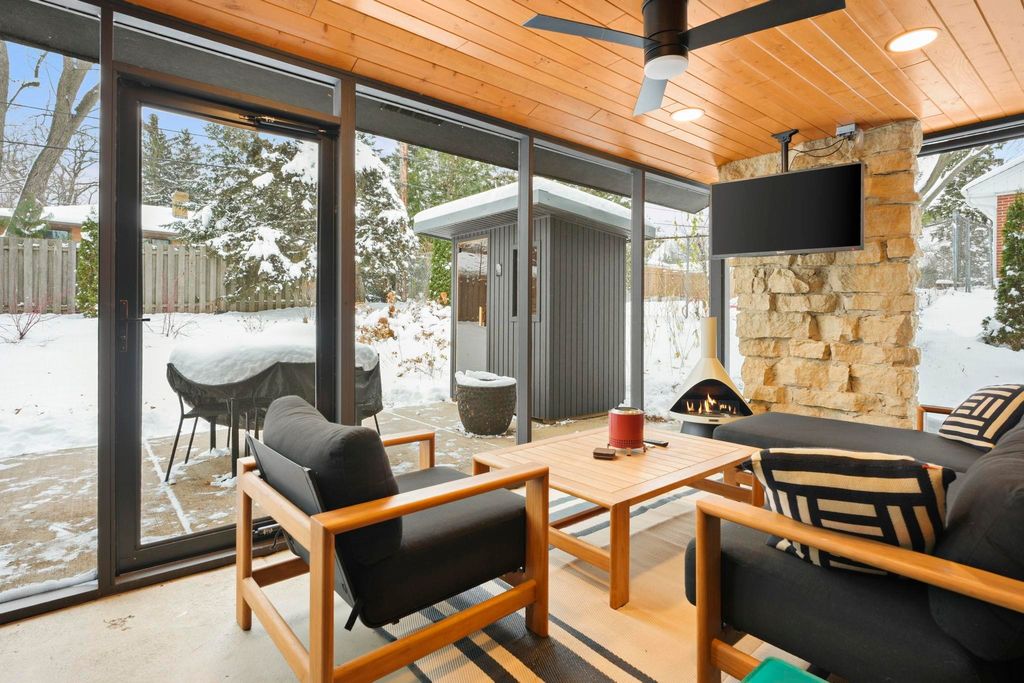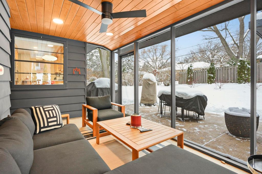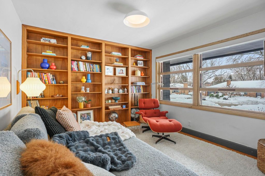 Rare mid-century ranch in Indian Hills, renewed with care to preserve its architectural character while elevating everyday living. Floor-to-ceiling windows brighten the shiplap ceiling, wood paneling, and Lannon stone fireplace that define the open living and dining areas. The period-inspired kitchen pairs custom angular cabinetry with heated floors, updated fixtures, and stainless appliances. Flexible lower level living functions as a guest suite with a snack bar, SMEG fridge, two Murphy beds, gym area, full bath with new shower door, and a finished laundry room with sink and storage. Updates include new exterior and garage doors, exterior paint, sealed drive, re-screened hopper windows, new hardware, window treatments, closet systems with lighting, refreshed finishes, can lighting, Ecobe