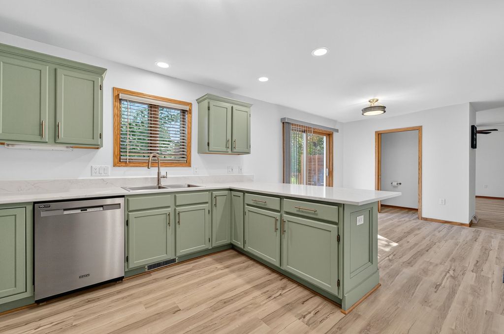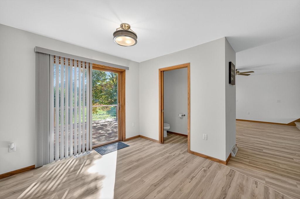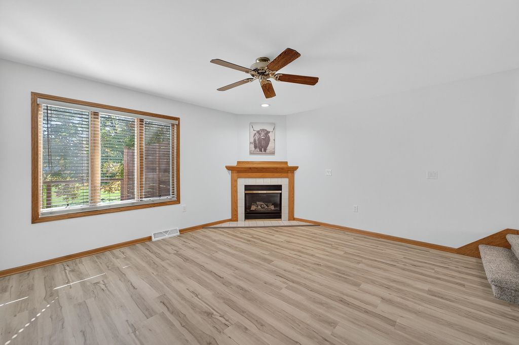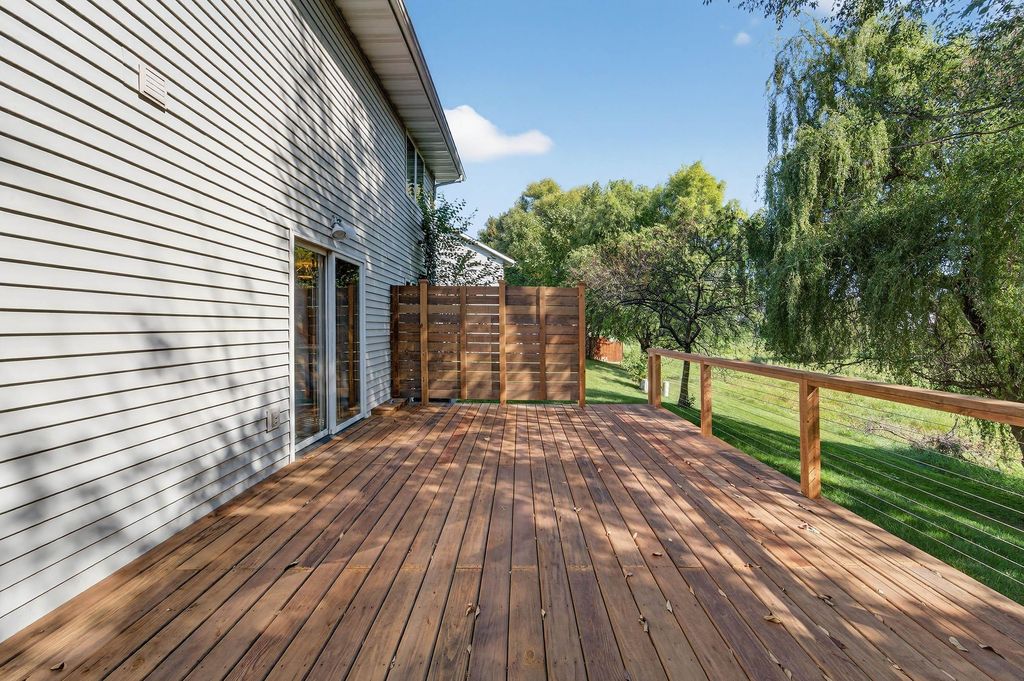 Move-in ready completely updated zero lot line twin home in heart of DeForest with no HOA or fee!! This 3 bed, 2.5 bath home has been renovated top to bottom w/ new LVP and new carpeting throughout. Multiple living spaces offer opportunity for a flexible floor plan with an open kitchen and dining space. The kitchen features all brand new Maytag SS apps, quartz counters, and breakfast bar with custom build accent. Walkout to the expansive newly built deck with tree-lined yard back to green space for extra privacy. Upstairs you'll find 3 bedrooms with the primary featuring its own en-suite w/ marble top vanity and tub/shower. The partly finished lower level offers additional room for storage and entertainment. New furnace '24, Roof '19, water heater '19, Garage door '25.