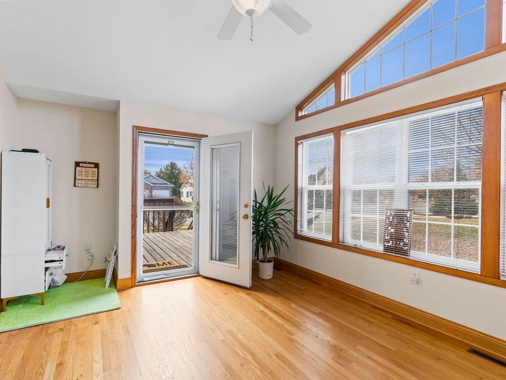 Available 12/15/2025! Bright and spacious 3-bedroom, 3-bath ranch-style corner unit offering over 2,200 sq. ft. of open-concept living. The main level showcases SunRoom, Skylights, vaulted ceilings, hardwood floors, and updated appliances and a breakfast bar. The main suite includes a walk-in closet and a 3/4 bath with shower. The finished lower level provides a large rec room with gas fireplace, a third bedroom with walk-in closet, and a third full bath. Laundry is currently located on the lower level, with main-level hookups available. Additional features include a 2-car attached garage and newer mechanicals. Security Deposit $3850 or a $10